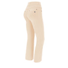 NOW® Bukser i Beige: designet for å fremheve og bevege seg med deg. De har en moderne 7/8 lengde som subtilt fremhever anklene dine. I tillegg kommer en komfortabel midt i livet for daglig letthet. Utseendet fullføres av en elegant flare-kutt som visuelt forlenger bena. Laget av et tilpasningsdyktig stretchmateriale for enkel bruk og fleksibilitet. Tilhører NOW®-kolleksjonen, disse buksene prioriterer ultimat komfort og frihet, og beveger seg lett med deg. Italiensk design som utstråler selvtillit og stil.