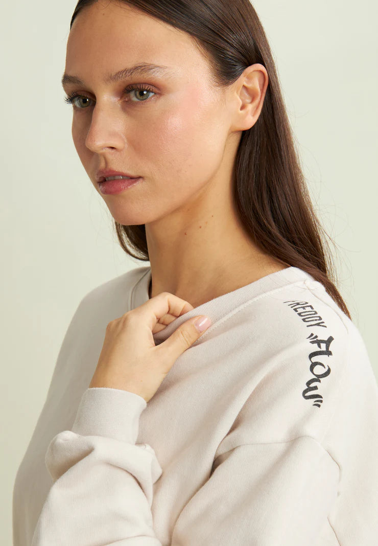 Minimalist but impressive: this oversized cropped sweatshirt is the perfect garment for those who love details. The small “Flow” print and FREDDY logo along the shoulder add personality to the look, while the brushed, enzyme-treated fabric guarantees extreme softness and full colour. Ribbed crew neck and cuffs, dropped shoulder and short cut for a casual and super contemporary vibe.