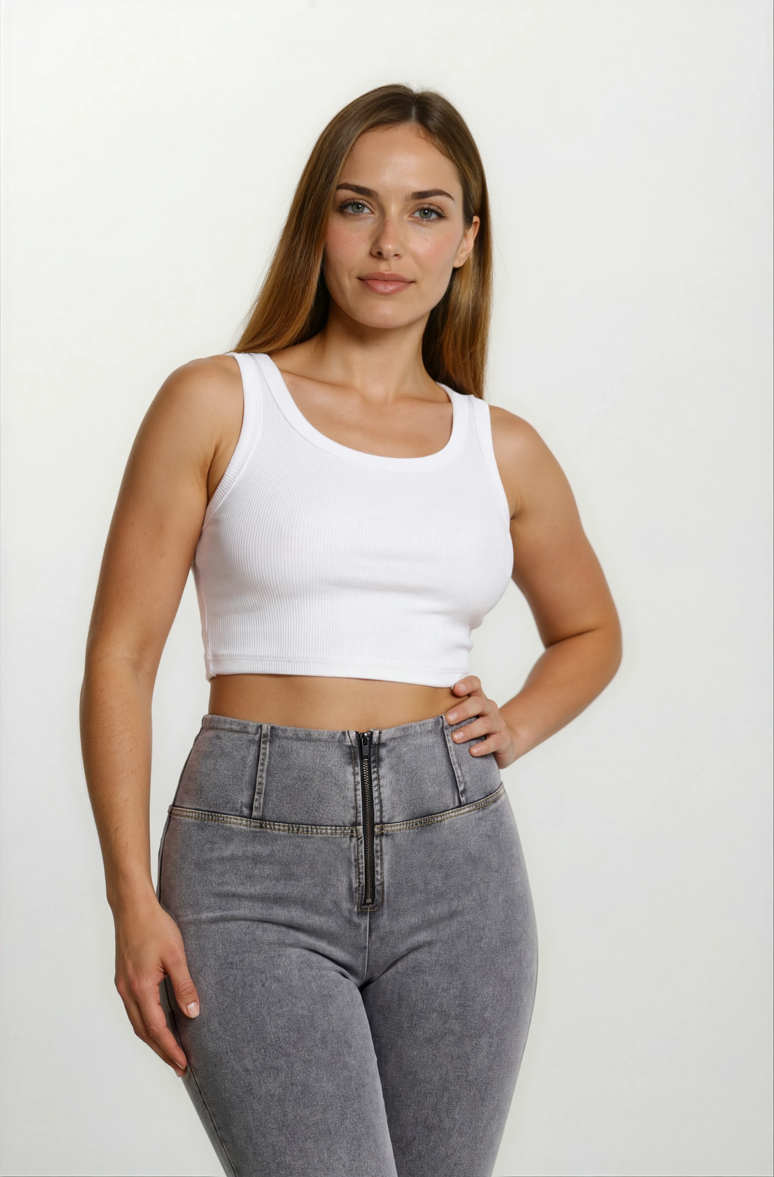 Opplev den unike passformen og følelsen av WR.UP®-buksene i grått. De kombinerer en slank skinny passform som omfavner kurvene dine. I tillegg kommer en flatterende høy midje som gir mild støtte. Utseendet fullføres med en tidløs full lengde, perfekt for alle årstider. Laget med et stretch denim-effekt materiale for autentisk stil og enkel bevegelse. Som en del av WR.UP®-serien har de patentert teknologi designet for å naturlig forbedre og forme silhuetten din. Perfekt for utallige anledninger, fra avslappet til elegant.