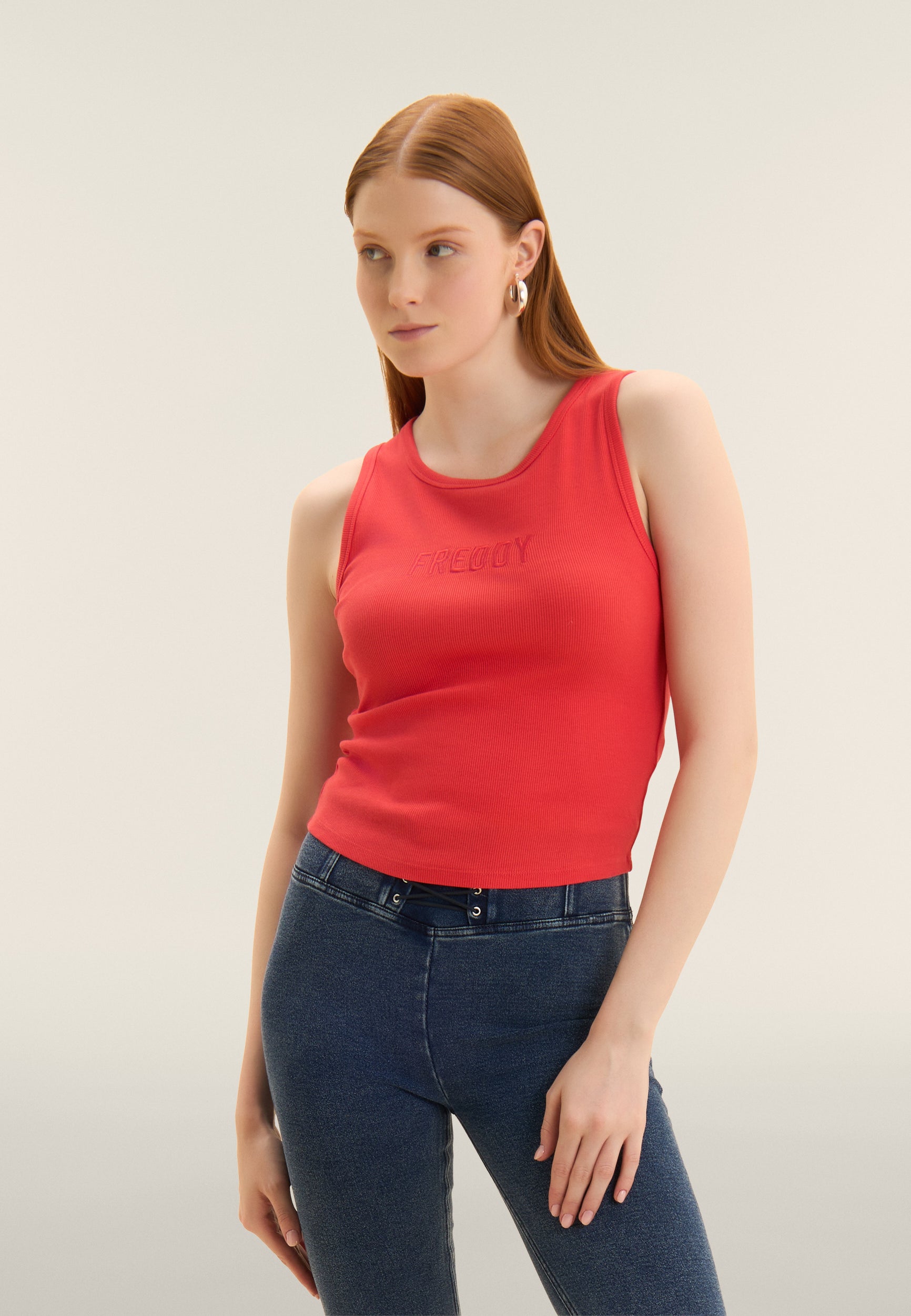 Cropped tank top with embroidered FREDDY logo - Cayenne Red