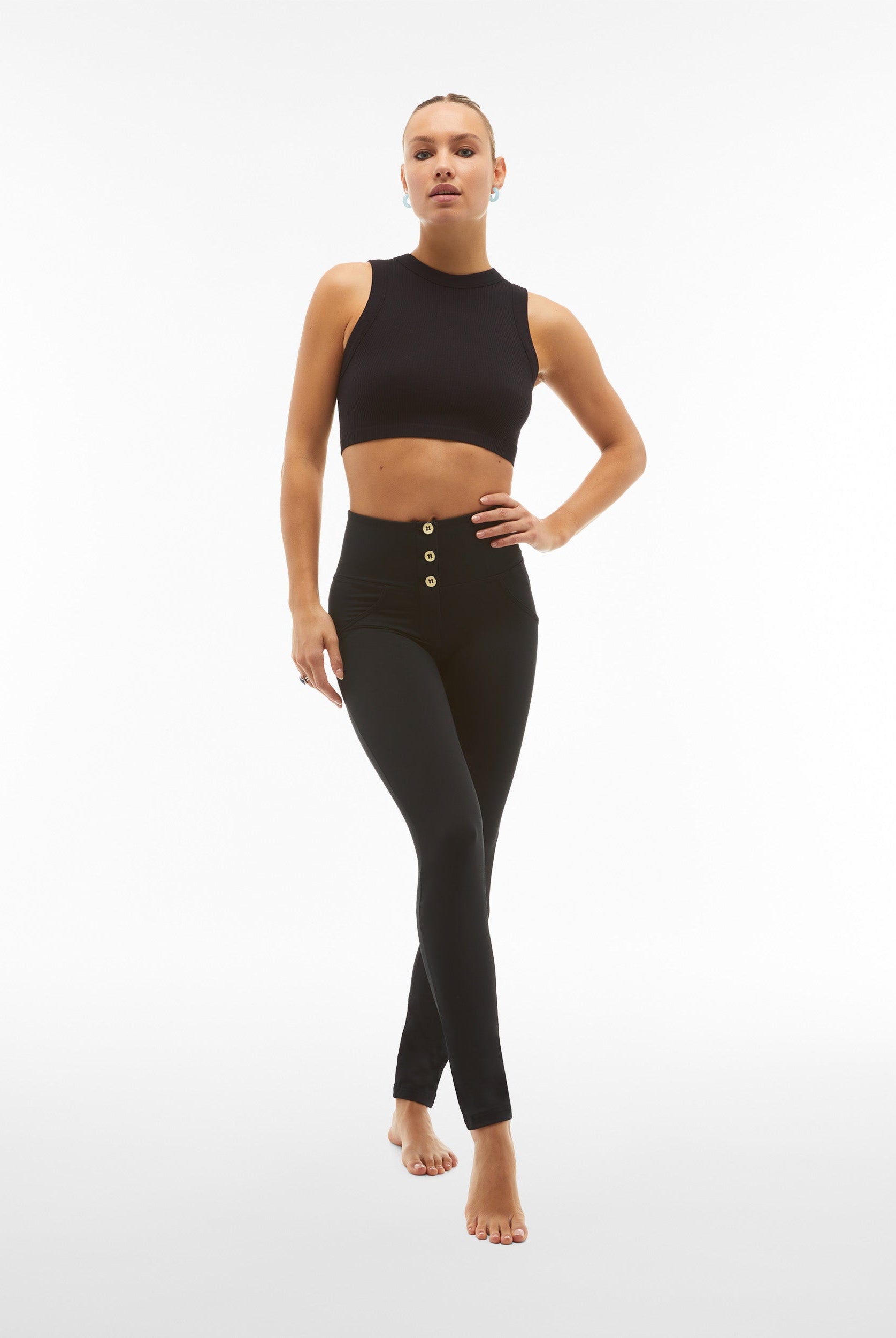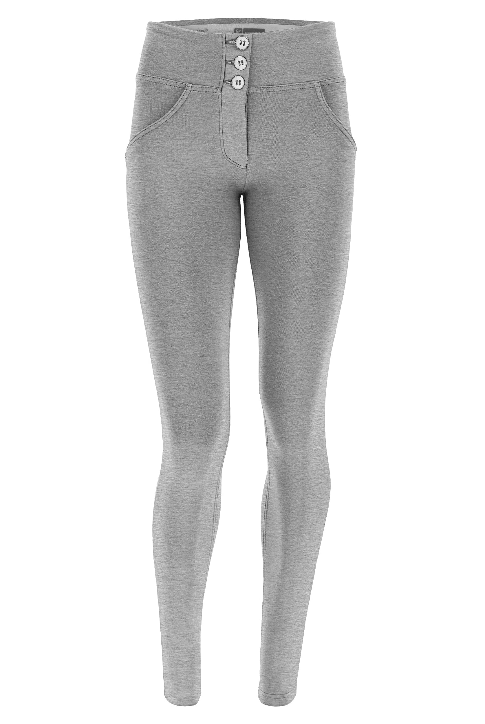 Die Mid-Waist-Modelle sitzen zwischen der Taille und dem Bauchnabel. Alle unsere mittlere Jeans haben vorne drei Freddy-typische Knöpfe. Sie sind etwas höher als unsere Regular-Waist-Hosen, aber nicht ganz so hoch, wie die High-Waist-Modelle. Sie haben einen bequemen, hohen Bund ohne Silikonstreifen, und die Knöpfe sorgen für einen perfekten Sitz. Jeans in Mid Waist eignen sich vor allem für kurvigere Frauen, die mehr Stütze und Form für den Bauch und die Taille möchten. Zusätzlich zaubern die Hosen natürlich den perfekten Po.