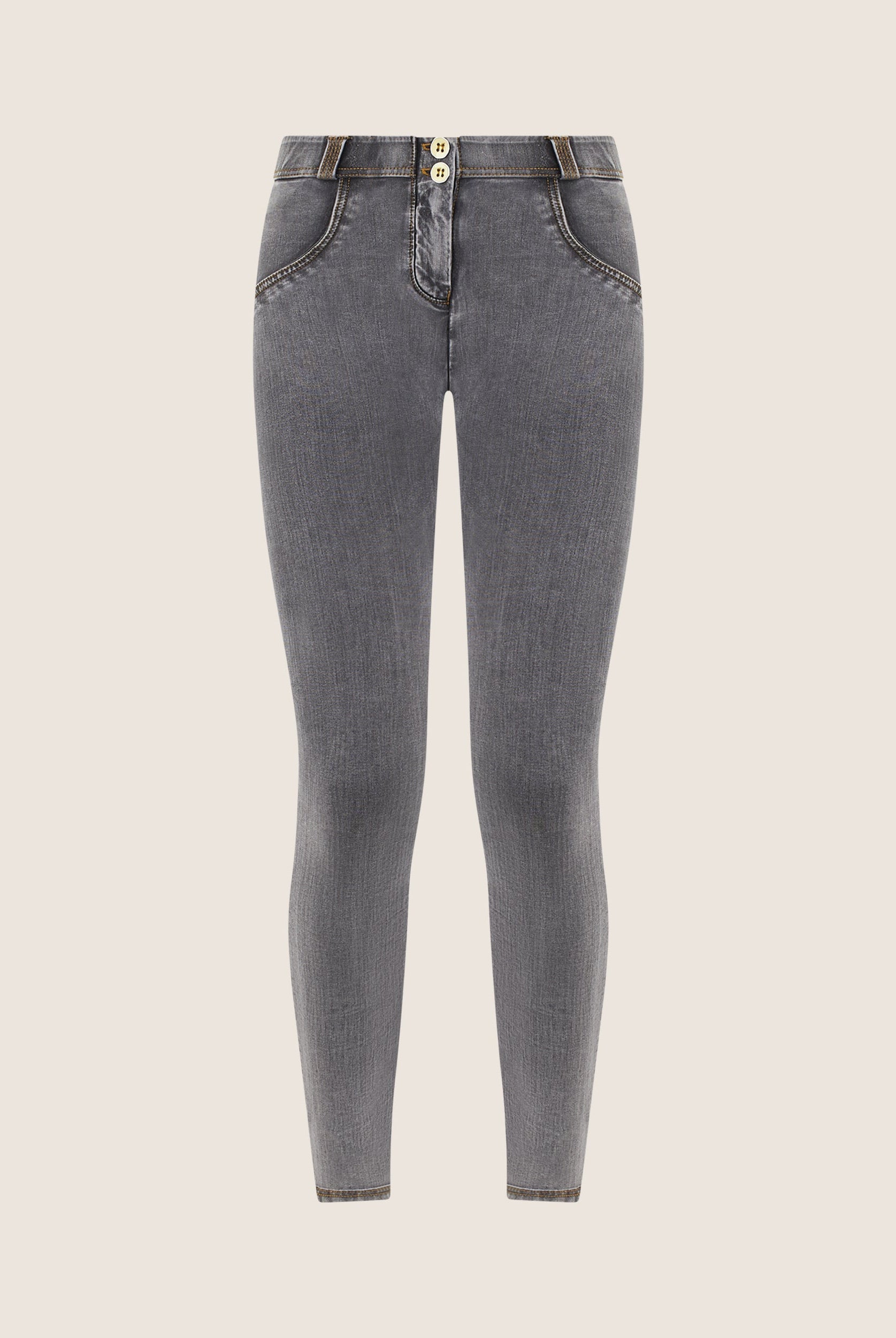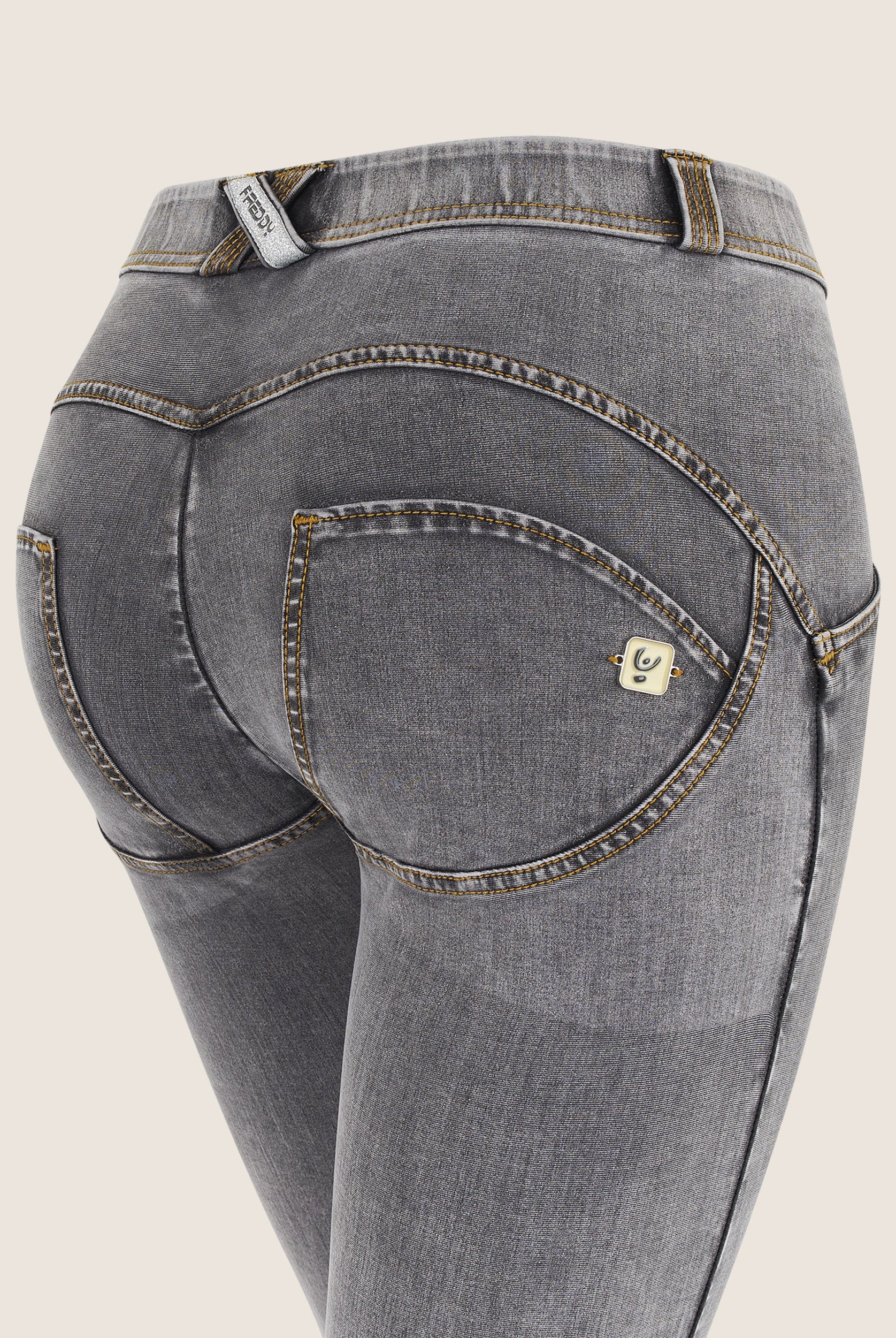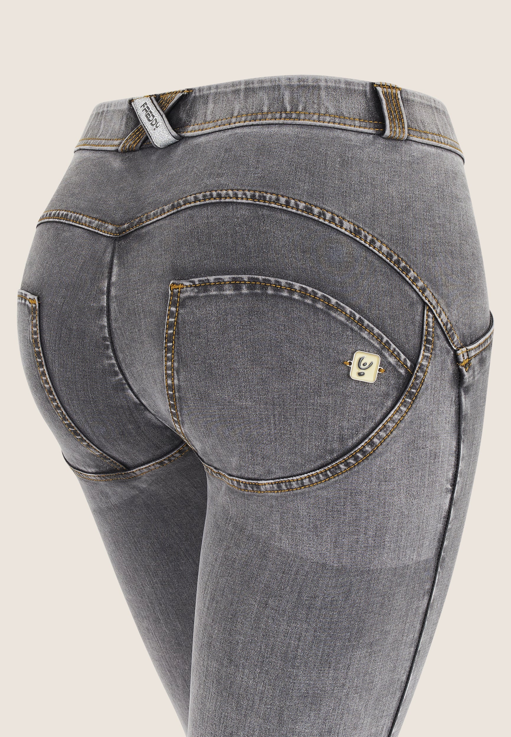 Freddy WR.UP® push up Jeans ist die am meisten imitierte Push up Hose der Welt! Vorhanden in zahlreichen Stilen: Ob skinny Jeans, Leggings oder Shorts, aus Baumwolle, Polyamid oder Kunstleder – diese Hosen schmeicheln deiner Figur! Stell dir eine Freddy als die beste Freundin für deinen Körper vor! Eine Kombination aus italienischem Design, geschickt platzierten Nähten, dehnbaren Stoffen und ultraleichtem Silikon zum Formen, Glätten und in Szene setzen deines Körpers, das macht Freddy WR.UP® zu den bequemsten fit Jeans aller Zeiten! Durch die stützende Wirkung an den richtigen Stellen sieht dein Körper hinreißend aus!