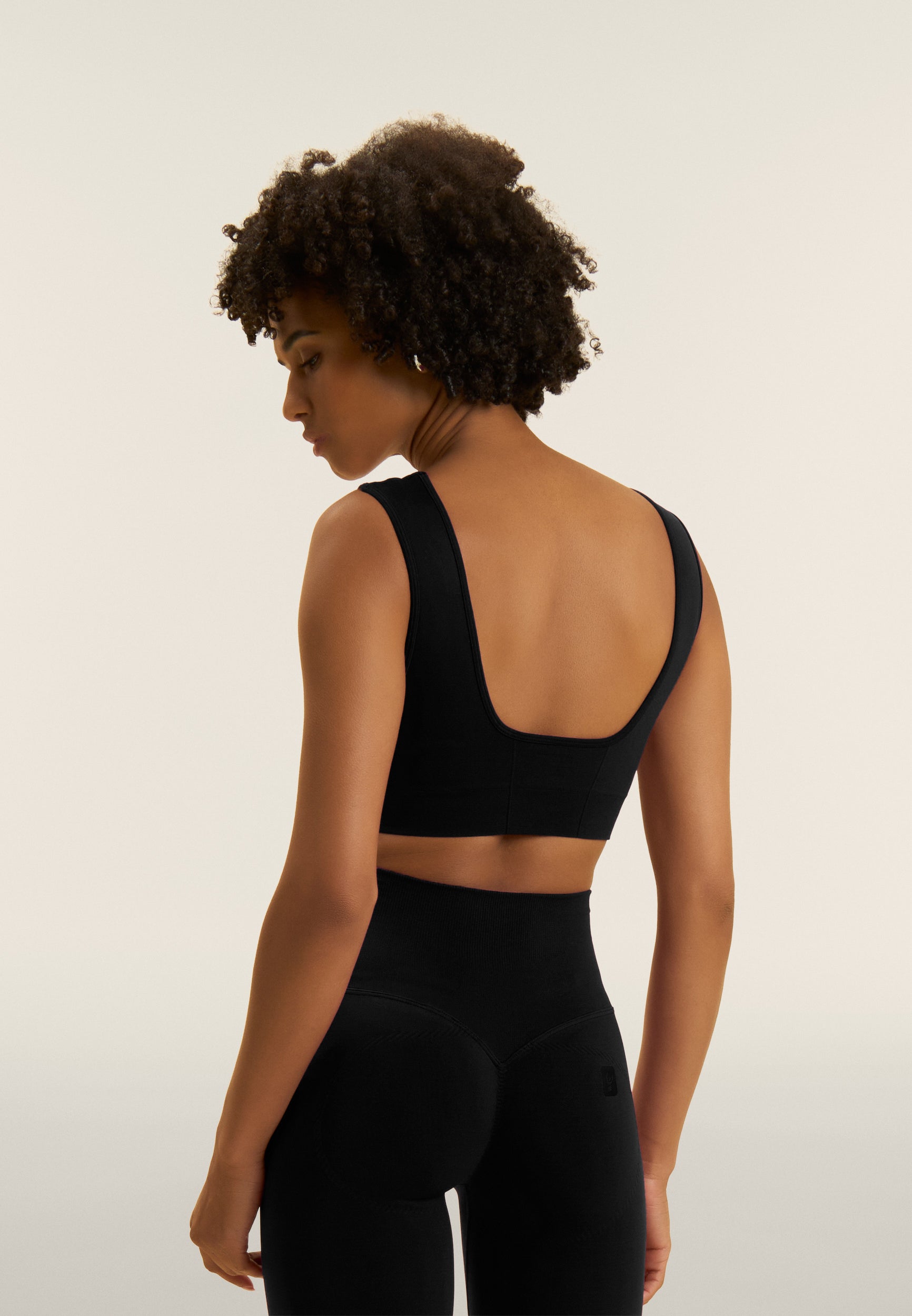 With its feminine and comfortable design, this light support sports top is perfect for yoga and low intensity activities. Sweetheart neckline at the front and square neckline at the back with regular shoulder straps. The nylon jersey performance fabric is soft, breathable and lightweight, with a small FREDDY contrasting logo on the front.