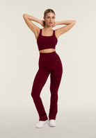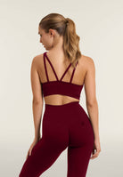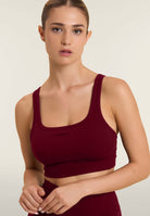 Medium support sports bra with removable moulded cups, ideal for daily training. The cut is designed to offer support and style: round neckline, regular shoulder straps crossed at the back, and side inserts in herringbone textured fabric. The nylon jersey fabric is breathable and durable.