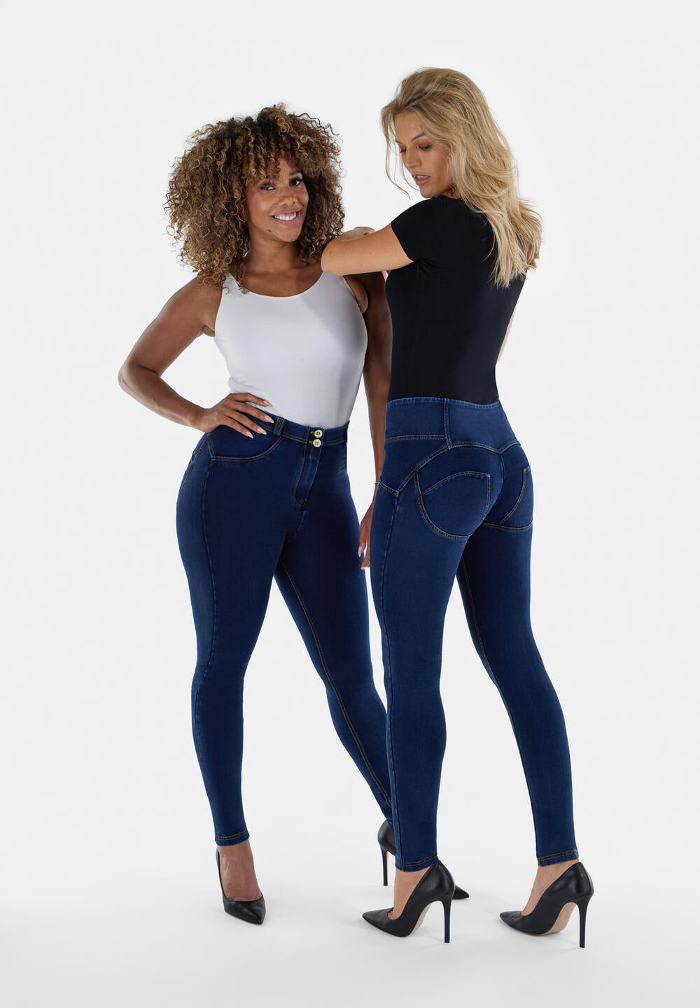 Hosen in Denim-Optik kombinieren den Stil von Jeans mit dem Komfort von Leggings. Unsere Denims sitzen wirklich wie eine zweite Haut und betonen dabei deine natürlichen Kurven. Obwohl diese Jeggings wie echte Jeans aussehen, sind sie extrem elastisch und genauso bequem wie deine Lieblingsleggings. Dank des Silikonbundes an der Taille rutscht die Hose nicht, und du brauchst keinen Gürtel. Eine Jeanshose ist eine echte Alleskönnerin, die du immer und überall tragen kannst. Wir bieten unsere Denims in zahlreichen Farben und mit unterschiedlichen Details, so dass du genau den perfekten Style für dich findest. Ob in voller Beinlänge oder Knöchellänge, mit hoher oder niedriger Leibhöhe, Freddys sitzen immer perfekt!