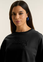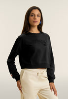 Cropped crew neck sweatshirt with Hello Kitty studs logo - Black
