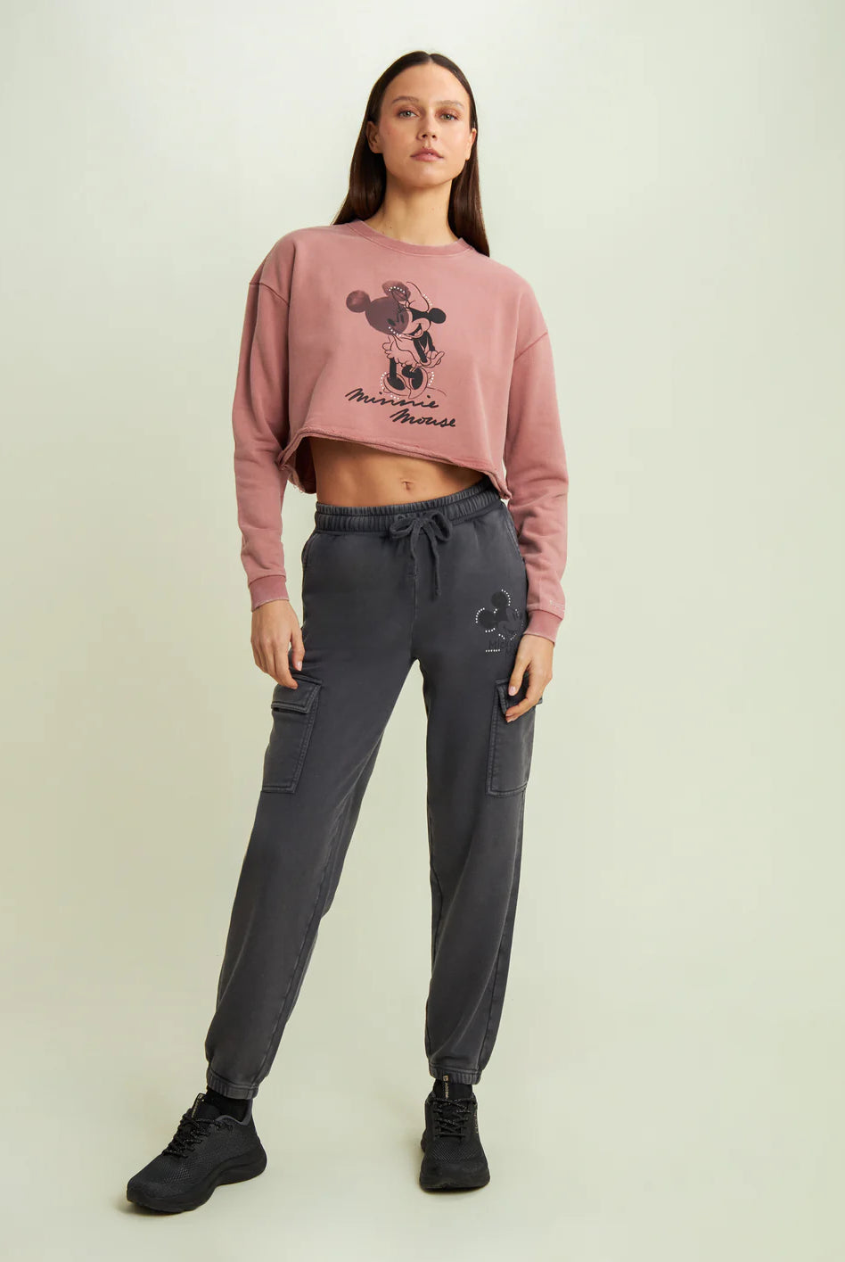 Women's cropped sweatshirt with Disney graphics and edge-to-edge seam