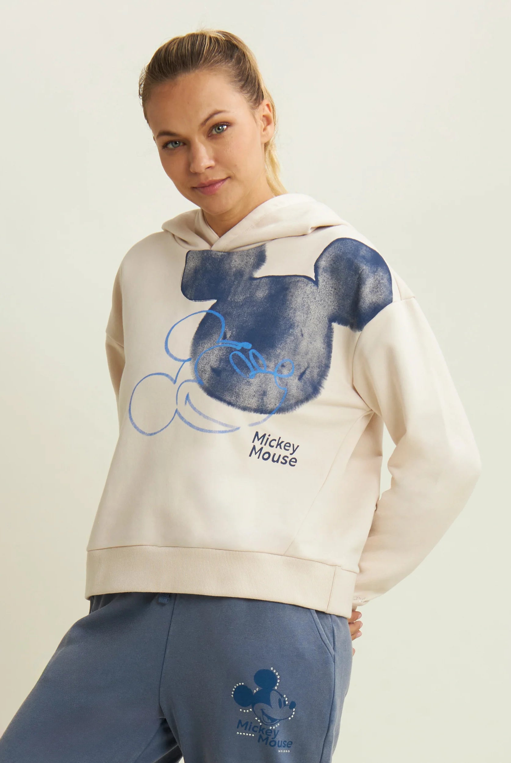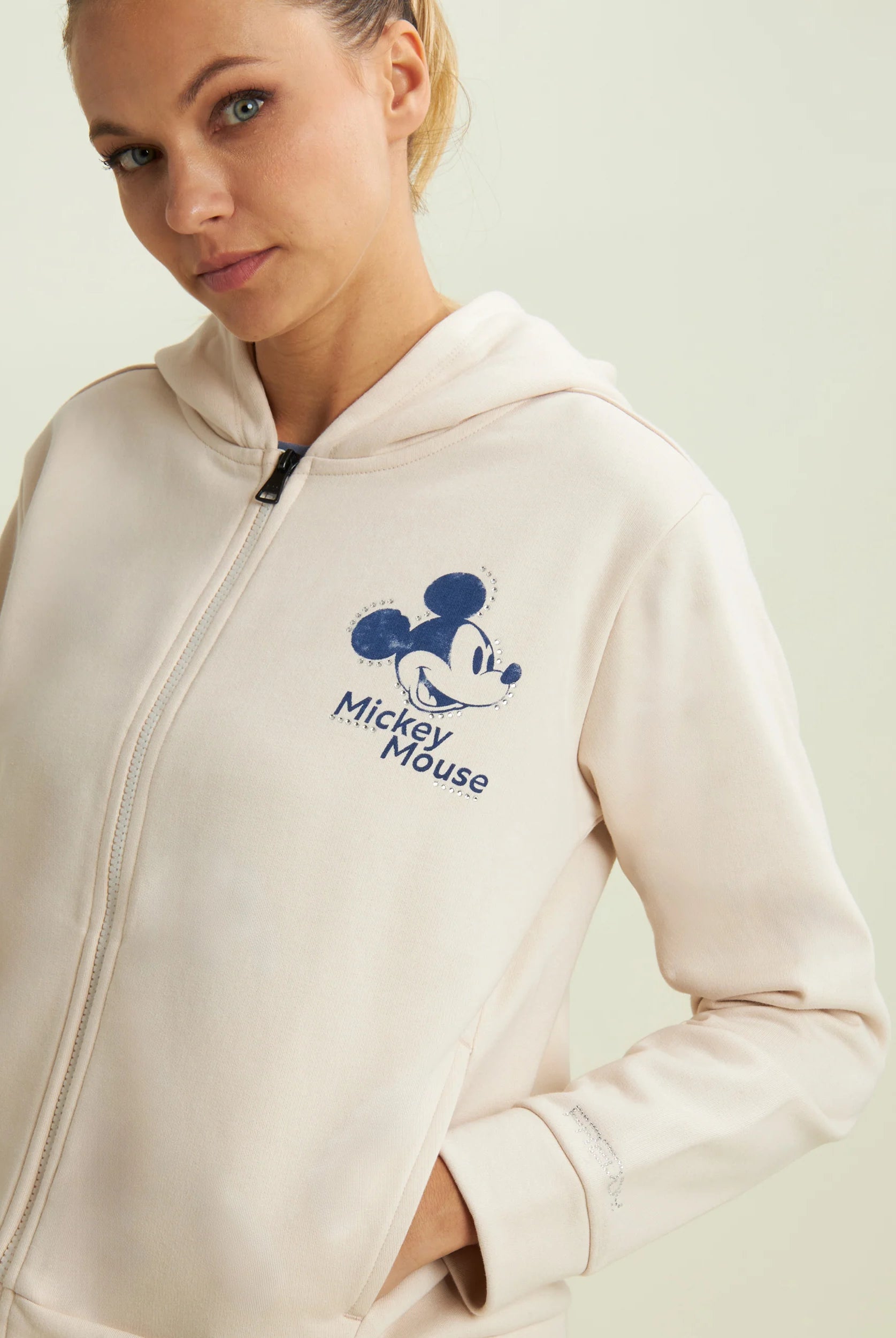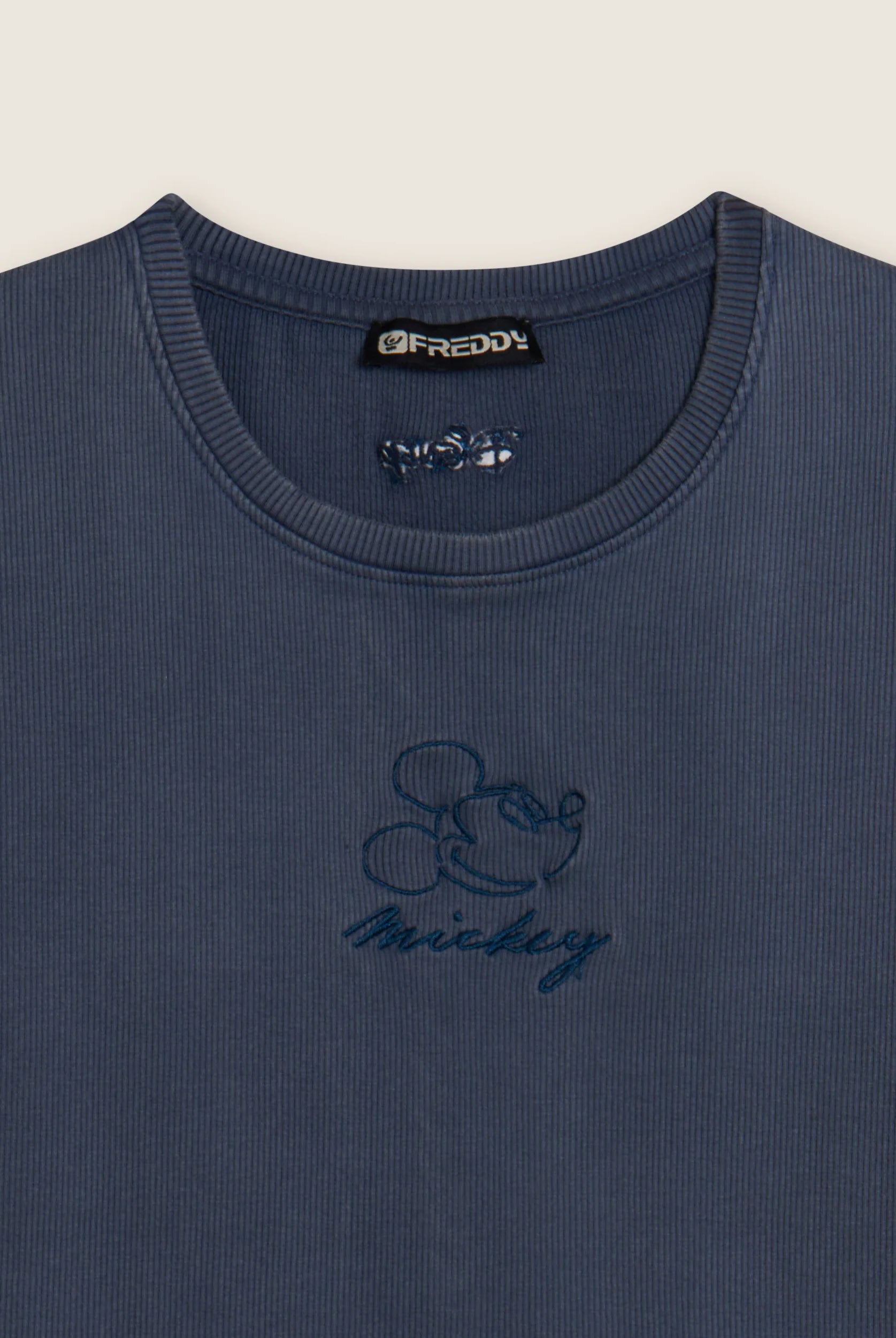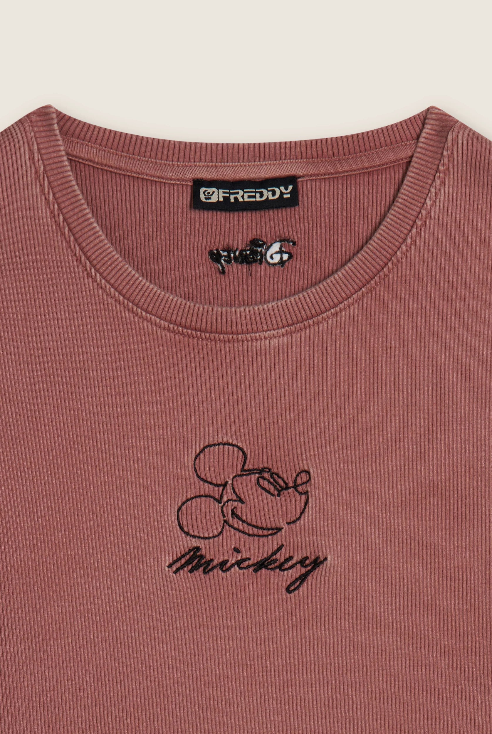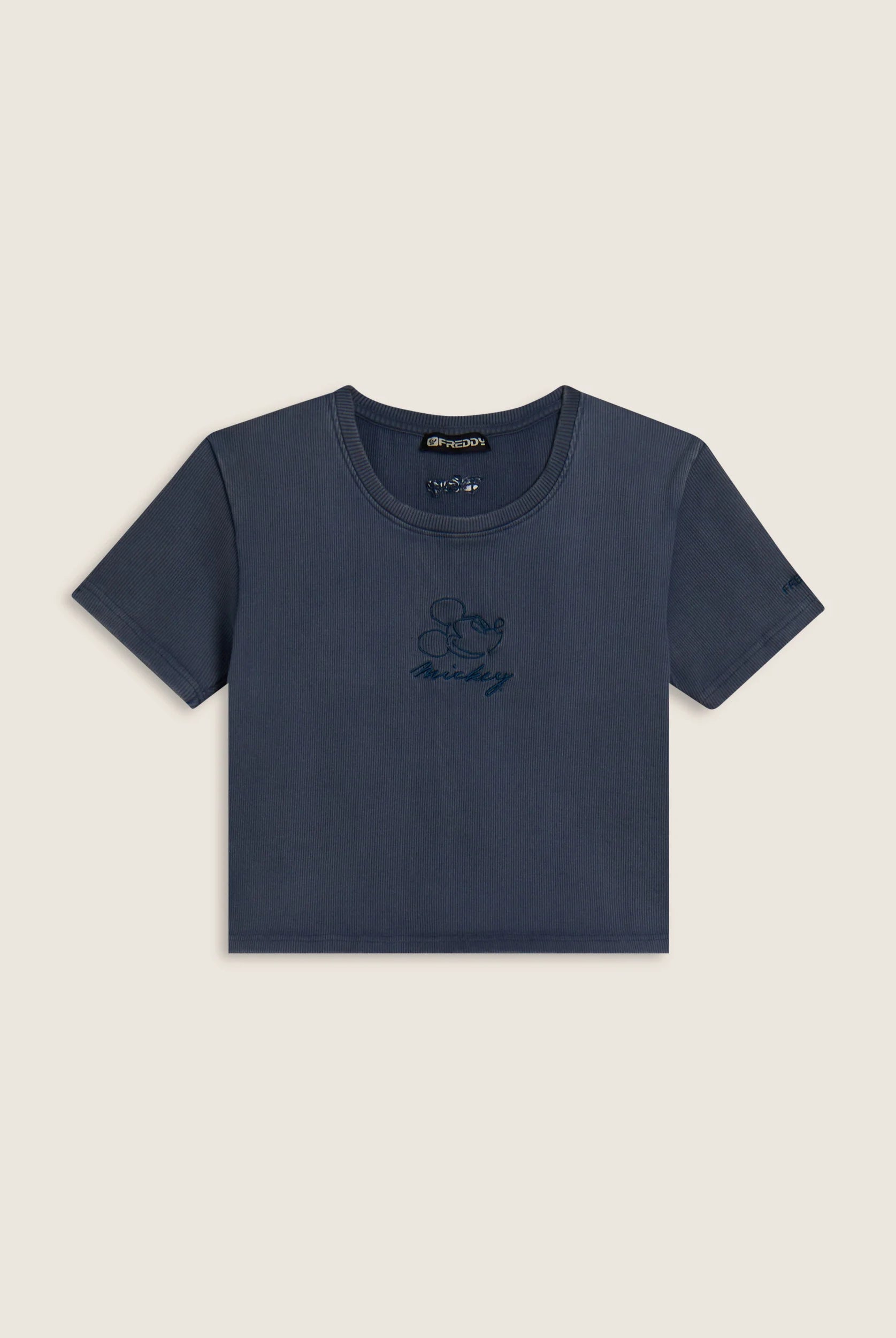 Women's cropped T-shirt with rhinestone Mickey Mouse