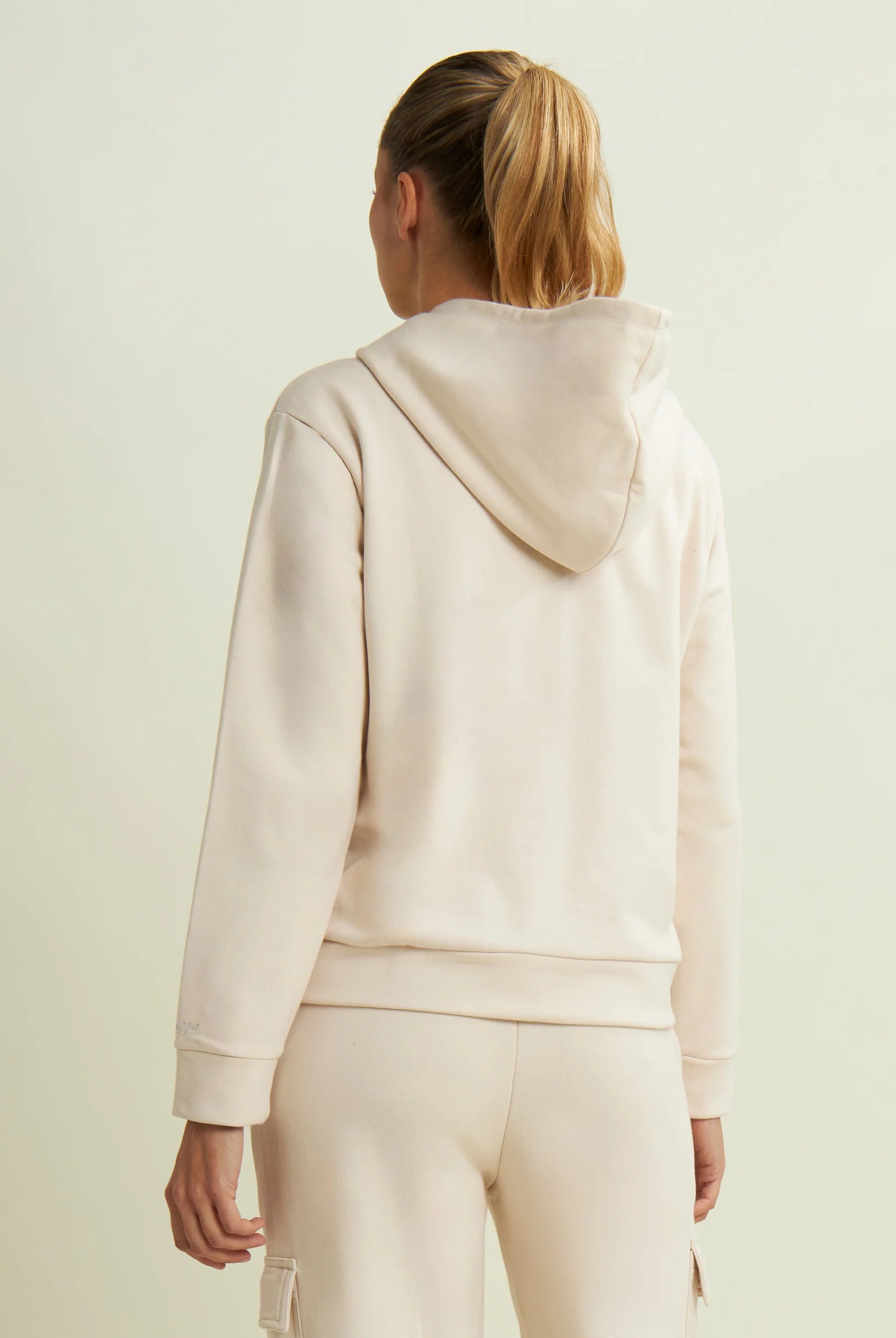 Two-tone cropped sweatshirt with half-zip and turtleneck