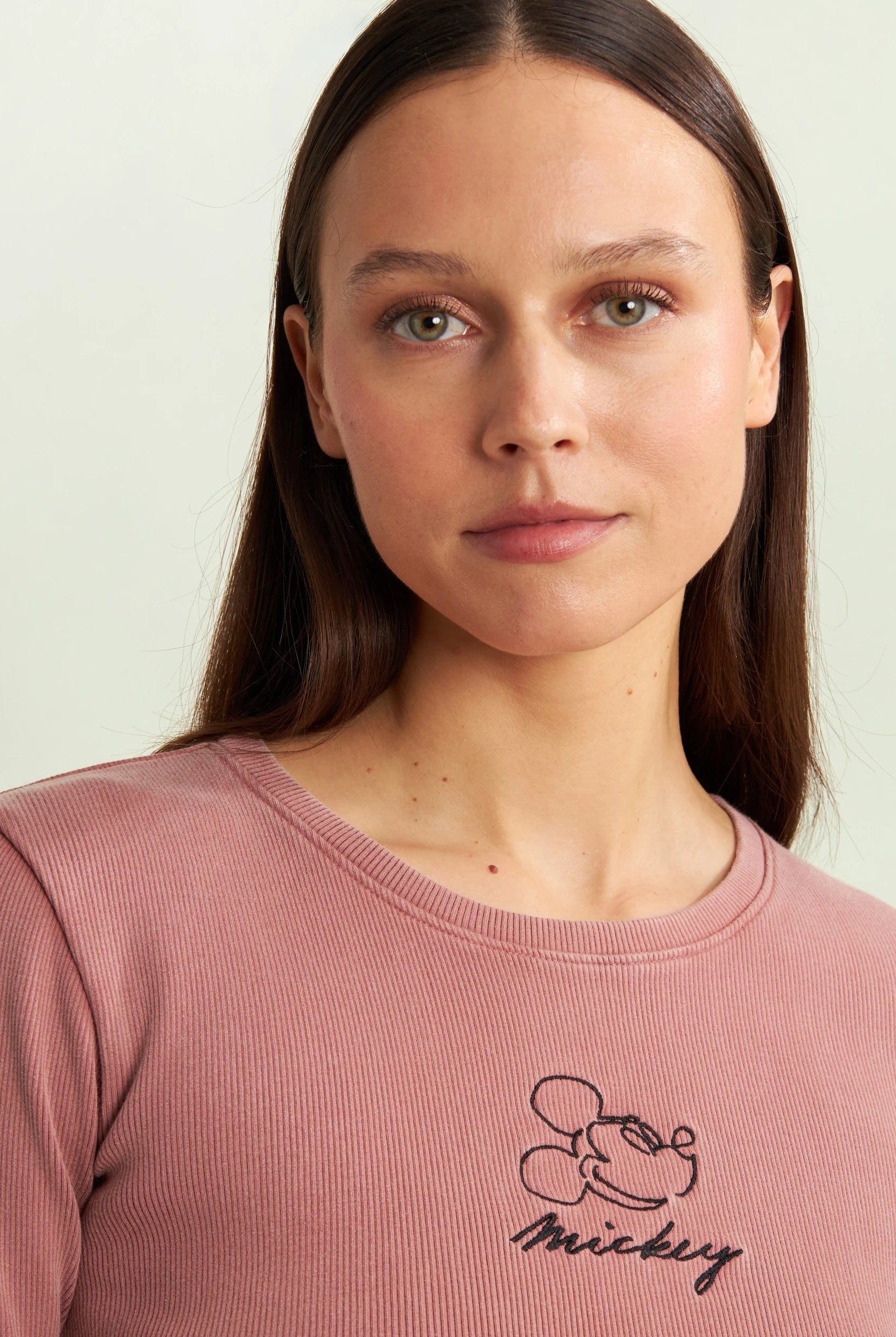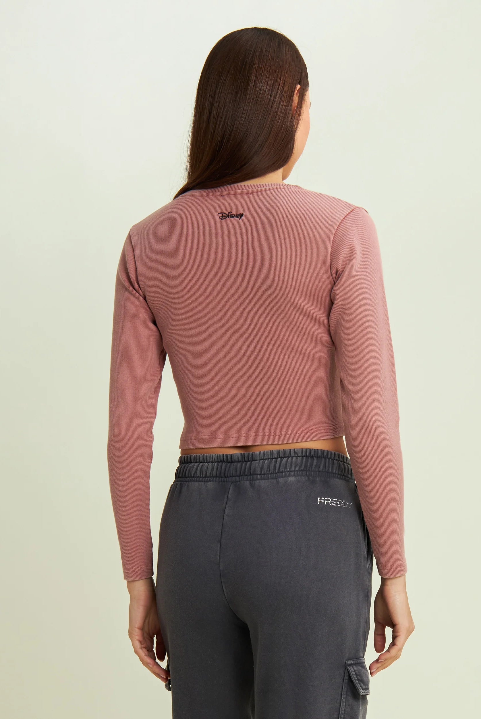Women's long-sleeved cropped T-shirt with Disney embroidery