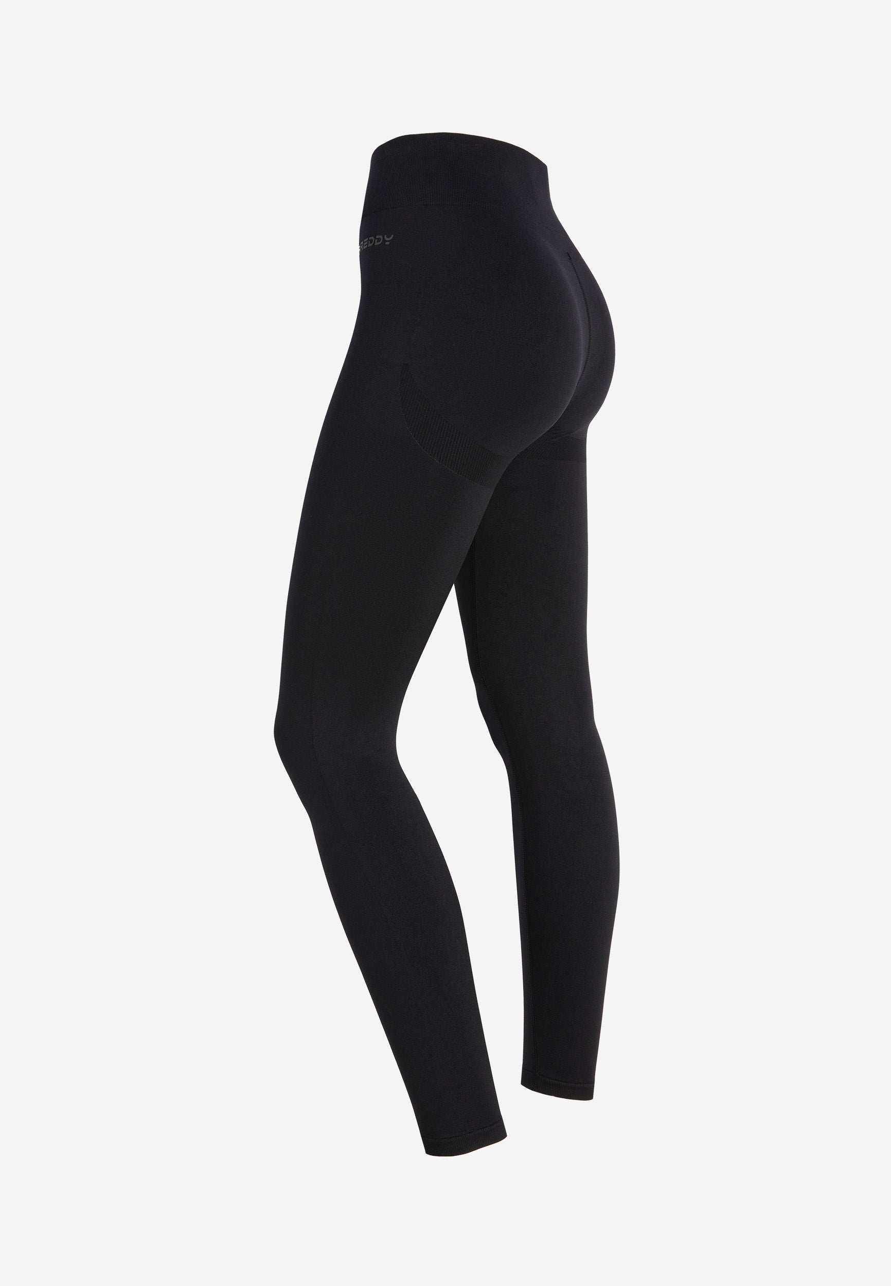 This style has a high ribbed waistband to a no-slip fit as you move, and ribbed cuffs. At the rear, the heart-shaped design of the yoke and ribbed inserts naturally shape and support your curves. The metallic logo printed on the right rear hip and the small FREDDY jacquard logo on the left front hip complete the list of stylish details.