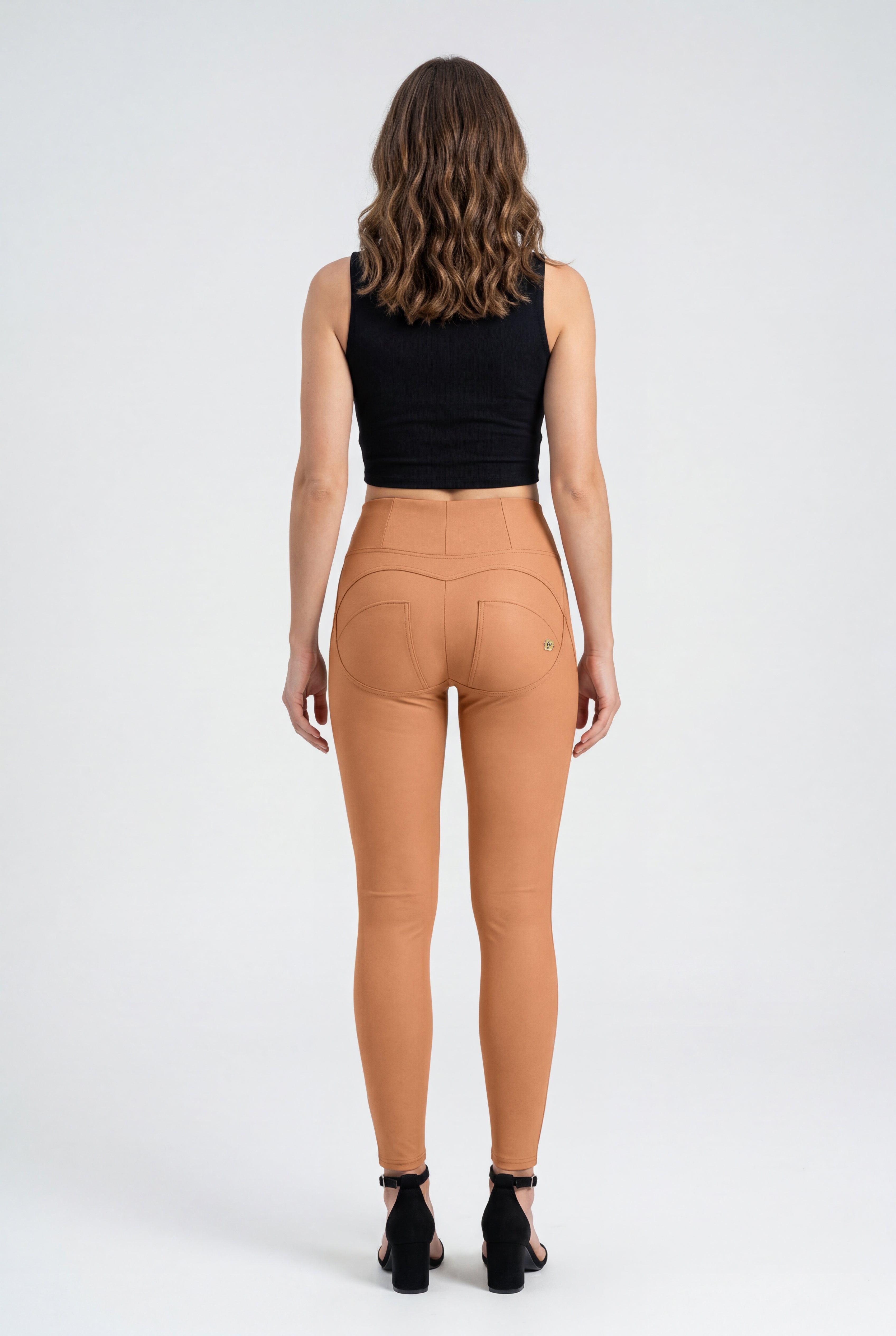 WR.UP Push-Up High Waist Skinny Vegan Leather Pant With Wet Effect - Lion Brown