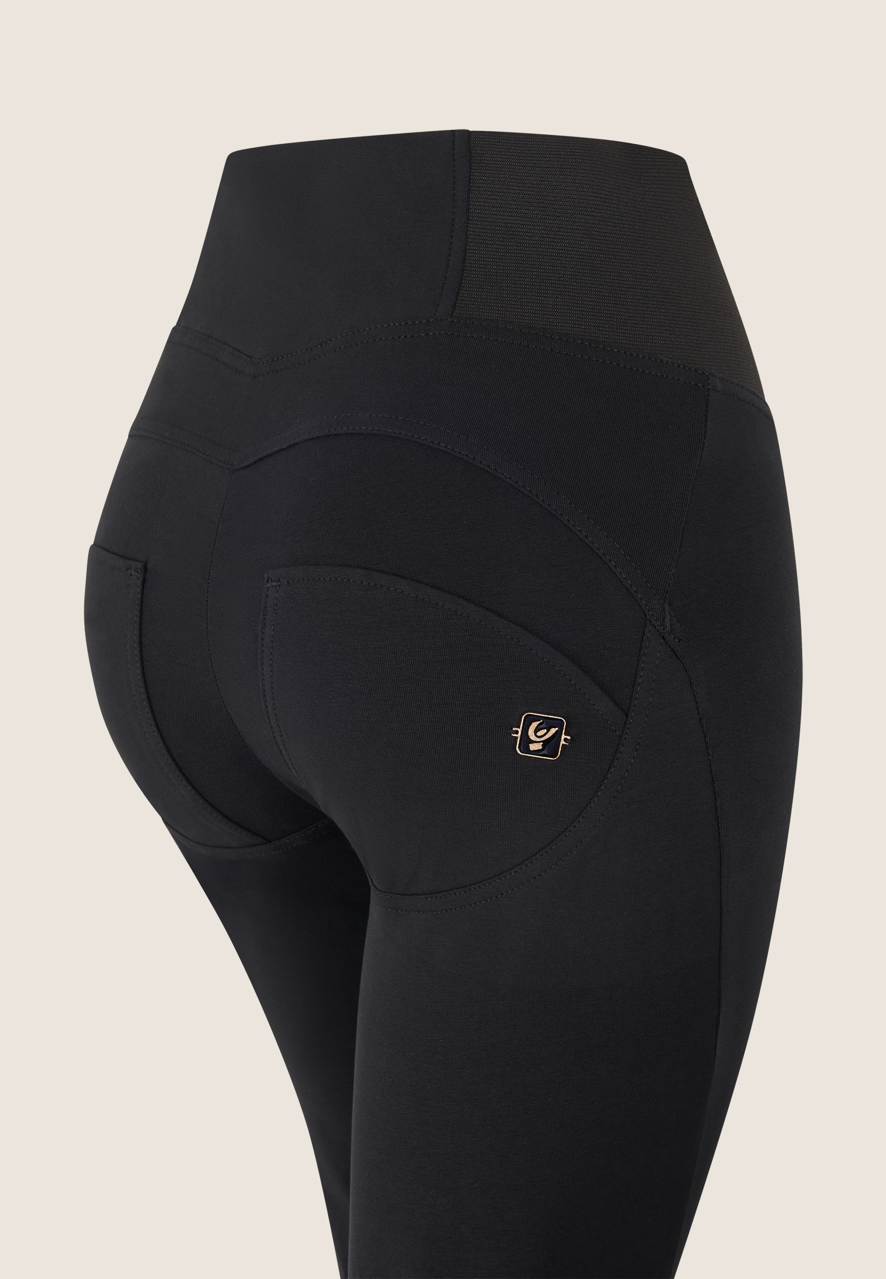 Die WR.UP® Pants in Schwarz – die perfekte Fusion aus ikonischem Freddy-Stil und außergewöhnlichem Tragekomfort. Mit ihrer zeitlosen Länge sind sie perfekt für jede Jahreszeit, während die schmeichelhaft hohe Taille sanften Halt gibt und deine Figur vorteilhaft betont. Ein eleganter Flare-Schnitt, der die Beine optisch verlängert, rundet den Look stilvoll ab. Gefertigt aus super-bequemem Stretch-Jersey, macht diese Hose jede Bewegung mit. Dank der patentierten WR.UP®-Technologie wird deine Silhouette auf natürliche Weise geformt und perfekt in Szene gesetzt. Erlebe die Hose, die Komfort und Style mühelos vereint – für Tage, an denen du dich einfach großartig fühlen willst.