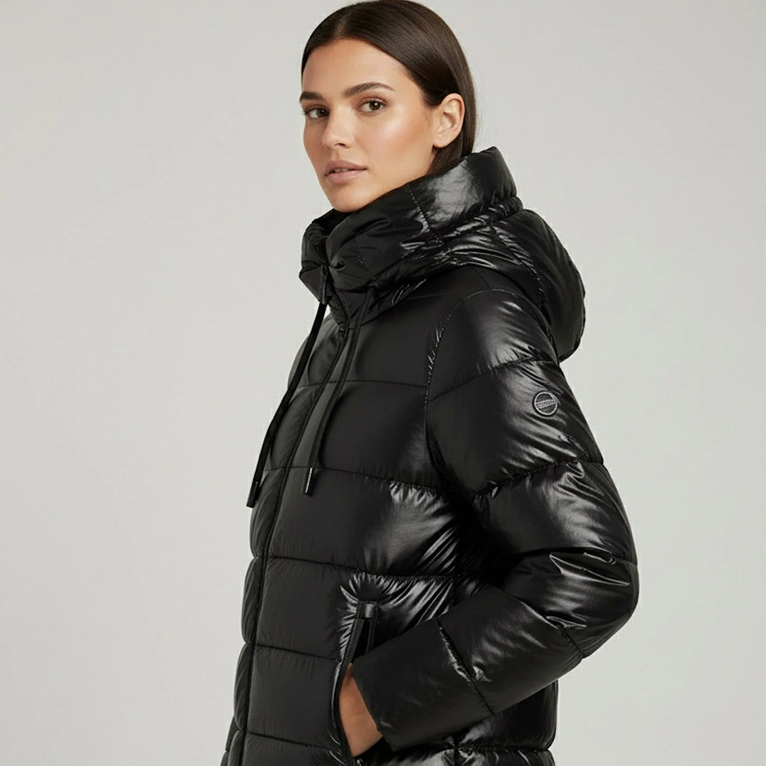 Women's cropped down jacket with turtleneck and adjustable drawstring
