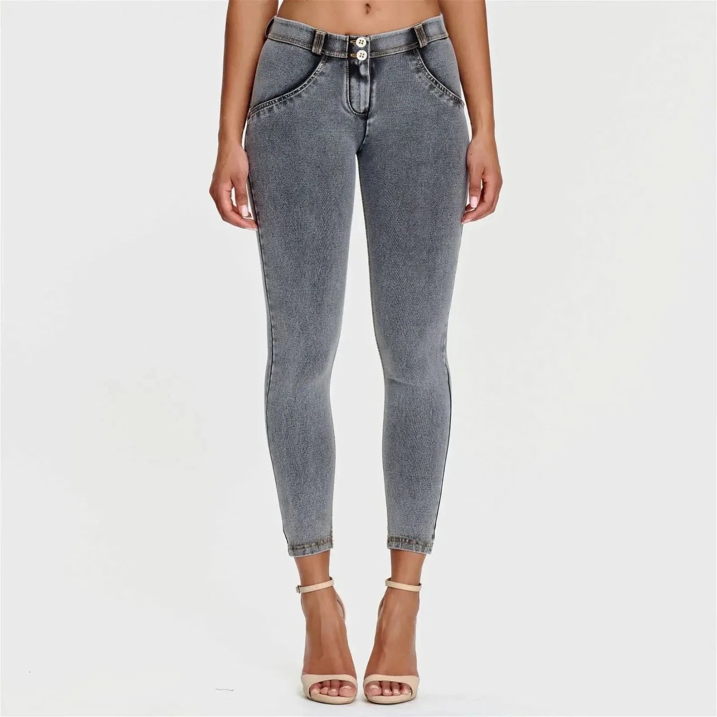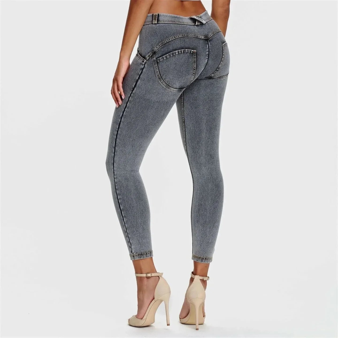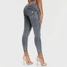 The WR.UP® Pants in Grey combine iconic Freddy style with exceptional comfort. This piece impresses with a modern 7/8 length that subtly highlights your ankles. Adding to that is a comfortable mid waist for everyday ease. The look is completed by a sleek skinny fit that hugs your curves. Crafted designed with a stretch denim-effect material for authentic style and easy movement. As part of the WR.UP® line, they feature patented technology designed to naturally enhance and sculpt your silhouette. Perfect for countless occasions, from casual to chic.