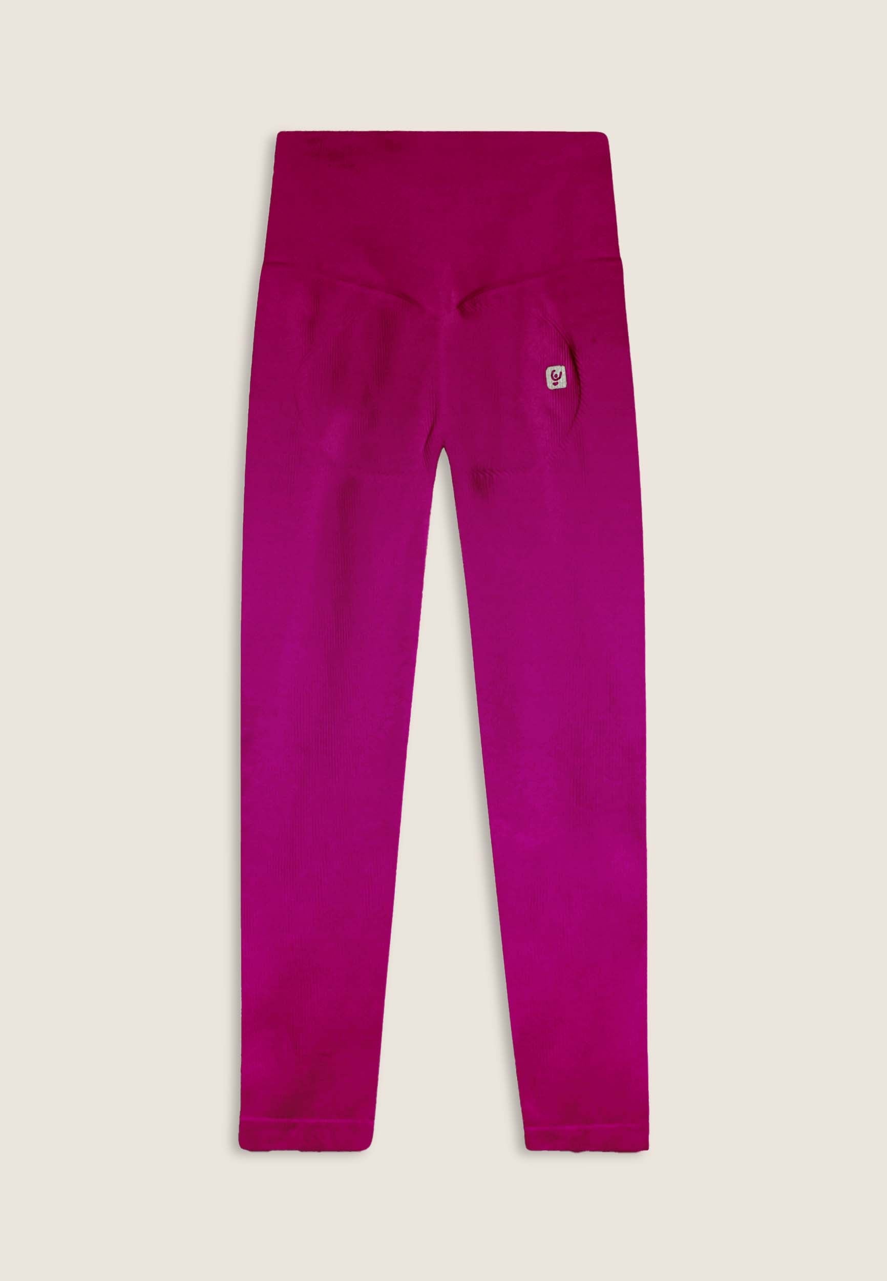 Sports leggings with 7/8 length and skinny leg, made from seamless ribbed fabric for absolute comfort. The very high waist guarantees a stable hold during training, while the heart-shaped seams on the buttocks naturally enhance the shape. Finished with a FREDDY logo on the front and “small man” logo on the back.