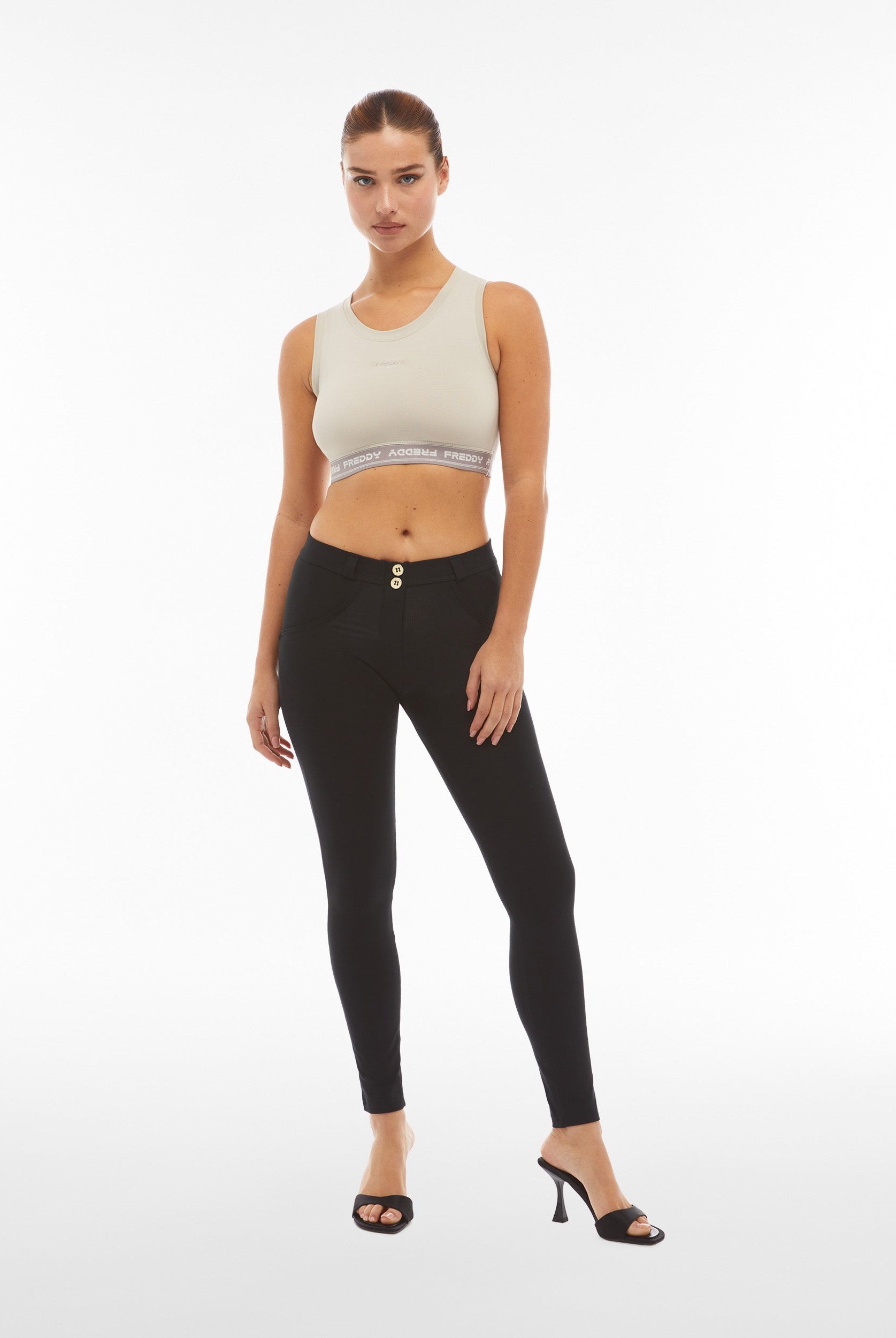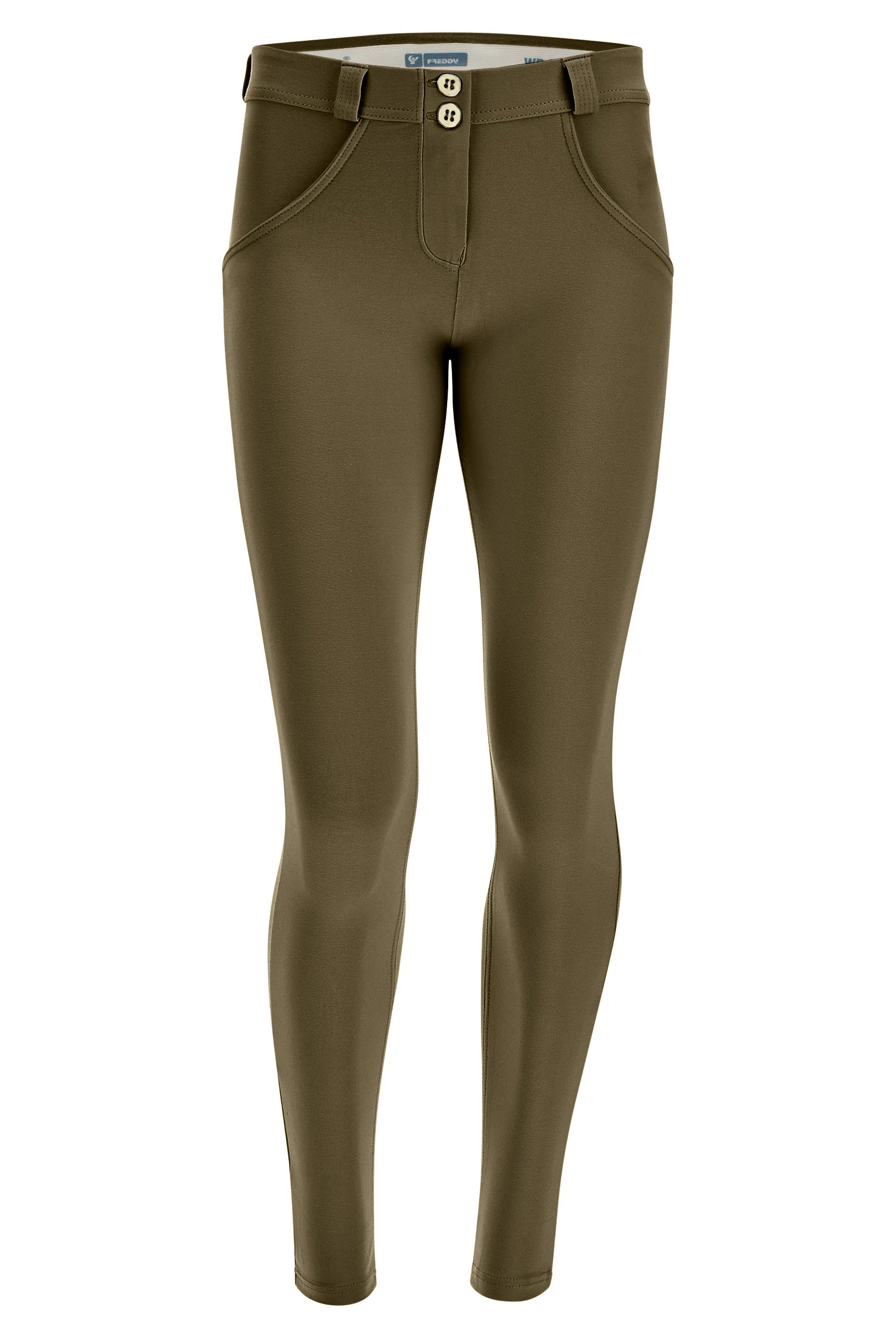 Regular Waist oder Regular Rise ist die klassische, normale Leibhöhe; die Hosen sitzen bequem an deiner Taille. Im Unterschied zu unseren Low-Waist-Hosen ist der Bund ca. 3 cm höher. Die normale Leibhöhe steht fast jeder Frau gut, und lässt sich mit allen Oberteilen kombinieren. Regular Waist ist die beliebteste und häufigste Bundhöhe. Wenn du klein und zierlich bist, lässt du deine Beine mit einer Regular-Waist-Jeans mit schmalen Hosenbeinen optisch verlängern.