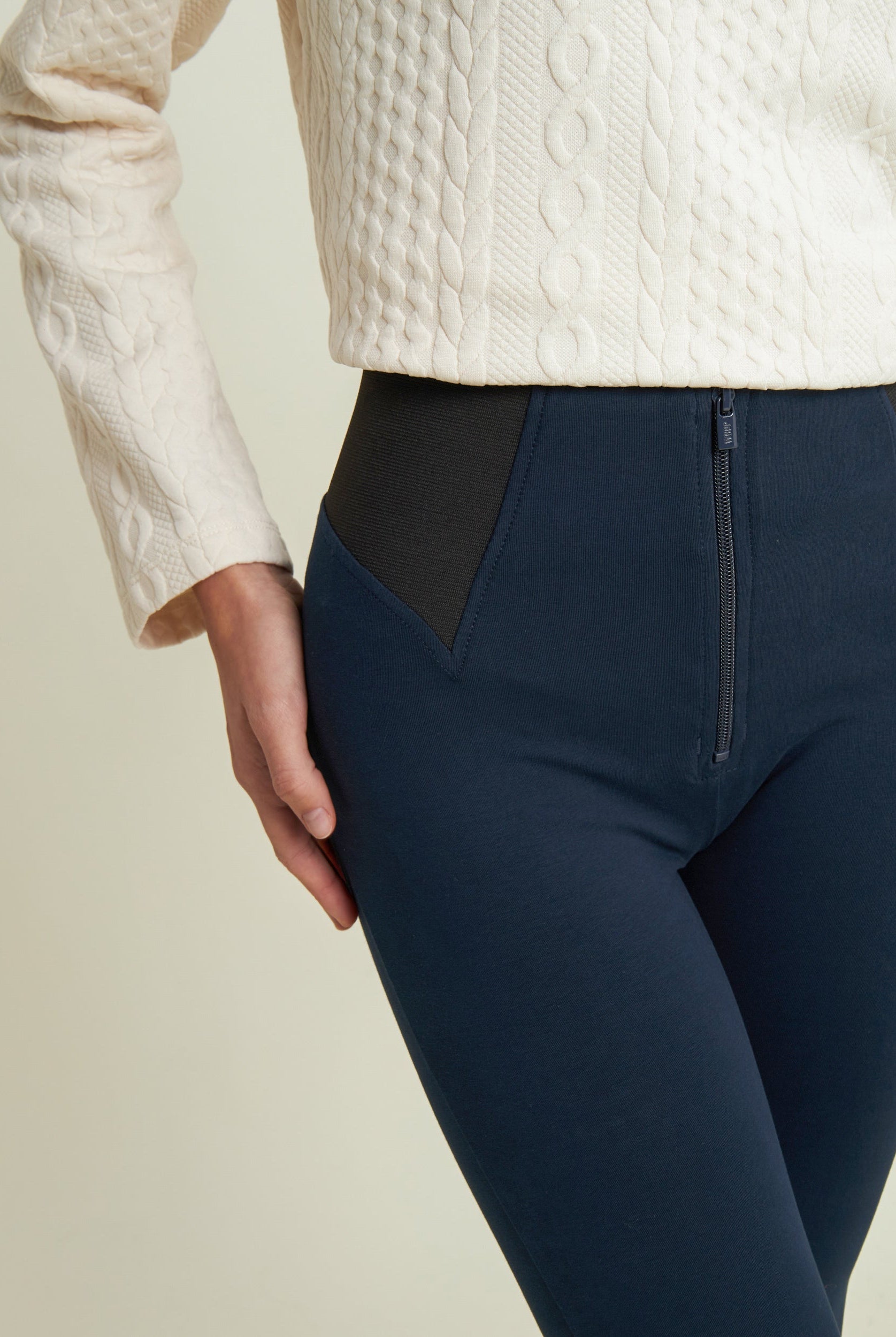 Hosen in Denim-Optik kombinieren den Stil von Push up Jeans mit dem Komfort von Leggings. Unsere Denims sitzen wirklich wie eine zweite Haut und betonen dabei deine natürlichen Kurven. Obwohl diese Jeggings wie echte Jeans aussehen, sind sie extrem elastisch und genauso bequem wie deine Lieblingsleggings. Dank des Silikonbundes an der Taille rutscht die Hose nicht, und du brauchst keinen Gürtel. Eine Jeanshose ist eine echte Alleskönnerin, die du immer und überall tragen kannst. Wir bieten unsere Denims in zahlreichen Farben und mit unterschiedlichen Details, so dass du genau den perfekten Style für dich findest. Ob in voller Beinlänge oder Knöchellänge, mit hoher oder niedriger Leibhöhe, Freddys sitzen immer perfekt!