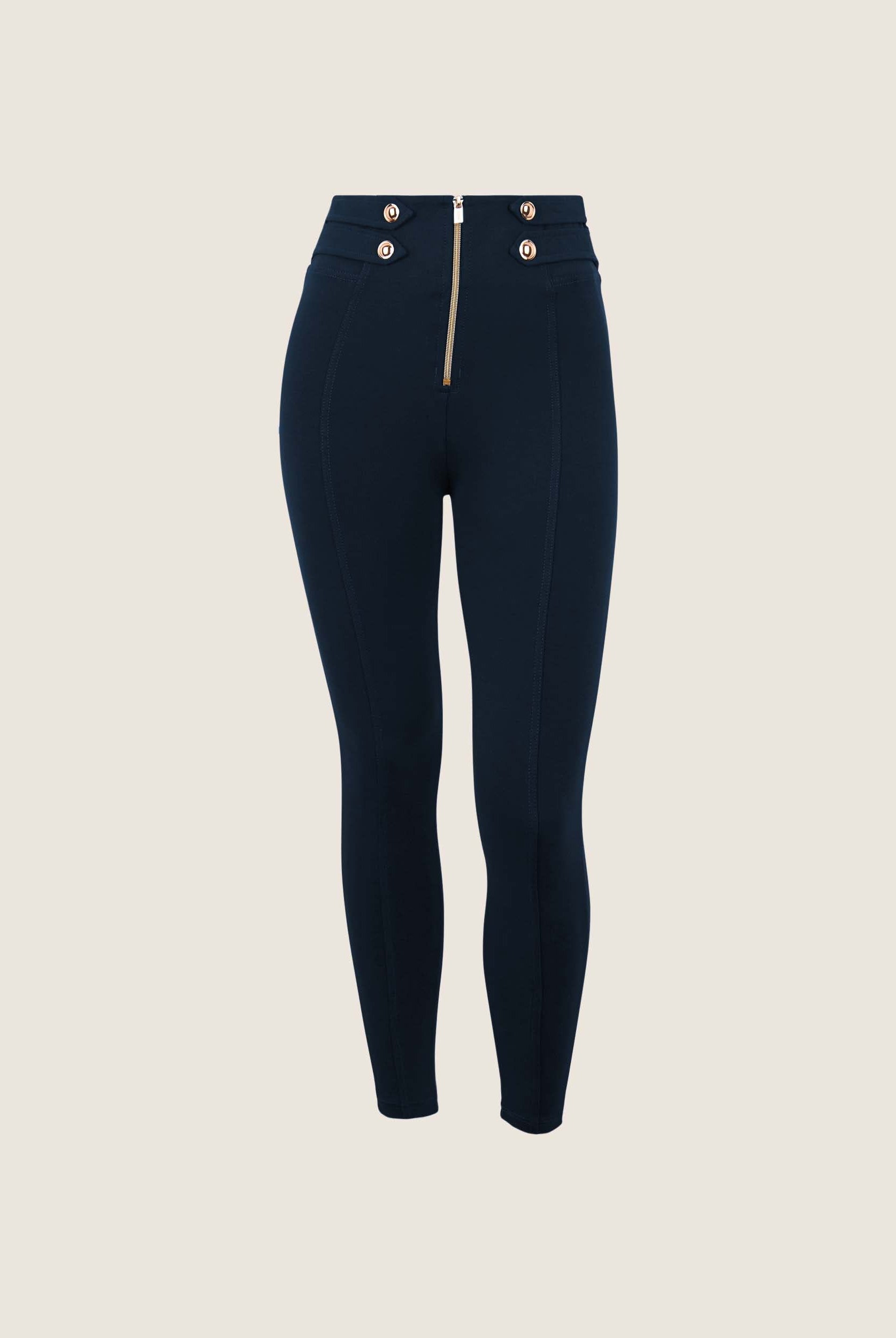 Die Mid-Waist-Modelle sitzen zwischen der Taille und dem Bauchnabel. Alle unsere mittlere Jeans haben vorne drei Freddy-typische Knöpfe. Sie sind etwas höher als unsere Regular-Waist-Hosen, aber nicht ganz so hoch, wie die High-Waist-Modelle. Sie haben einen bequemen, hohen Bund ohne Silikonstreifen, und die Knöpfe sorgen für einen perfekten Sitz. Jeans in Mid Waist eignen sich vor allem für kurvigere Frauen, die mehr Stütze und Form für den Bauch und die Taille möchten. Zusätzlich zaubern die Hosen natürlich den perfekten Po.