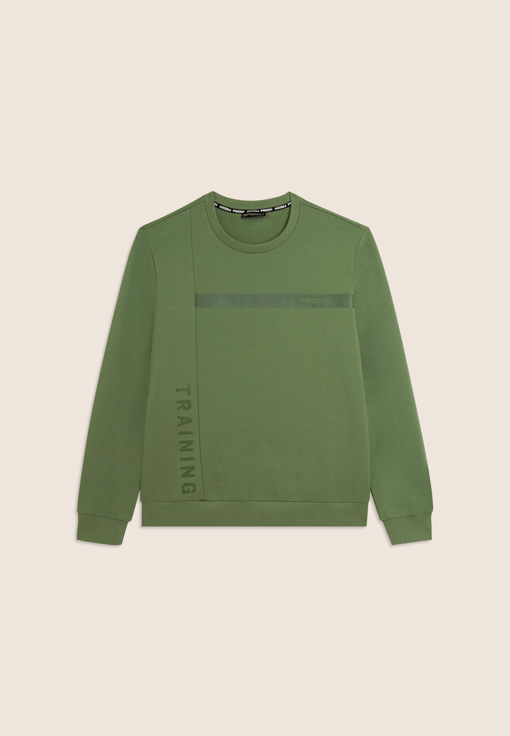 Men's sweatshirt in regular fit and length, made of Baby French Terry, a soft, slightly stretchy fabric perfect for everyday activity. The crew neck, cuffs and bottom band are ribbed for a stable and comfortable fit. The sporty design of the panel stitching is enhanced by the FREDDY logo band on the chest and the vertical 'TRAINING' lettering on the right side, both printed tone-on-tone with a rubberised effect for a technical and modern look.