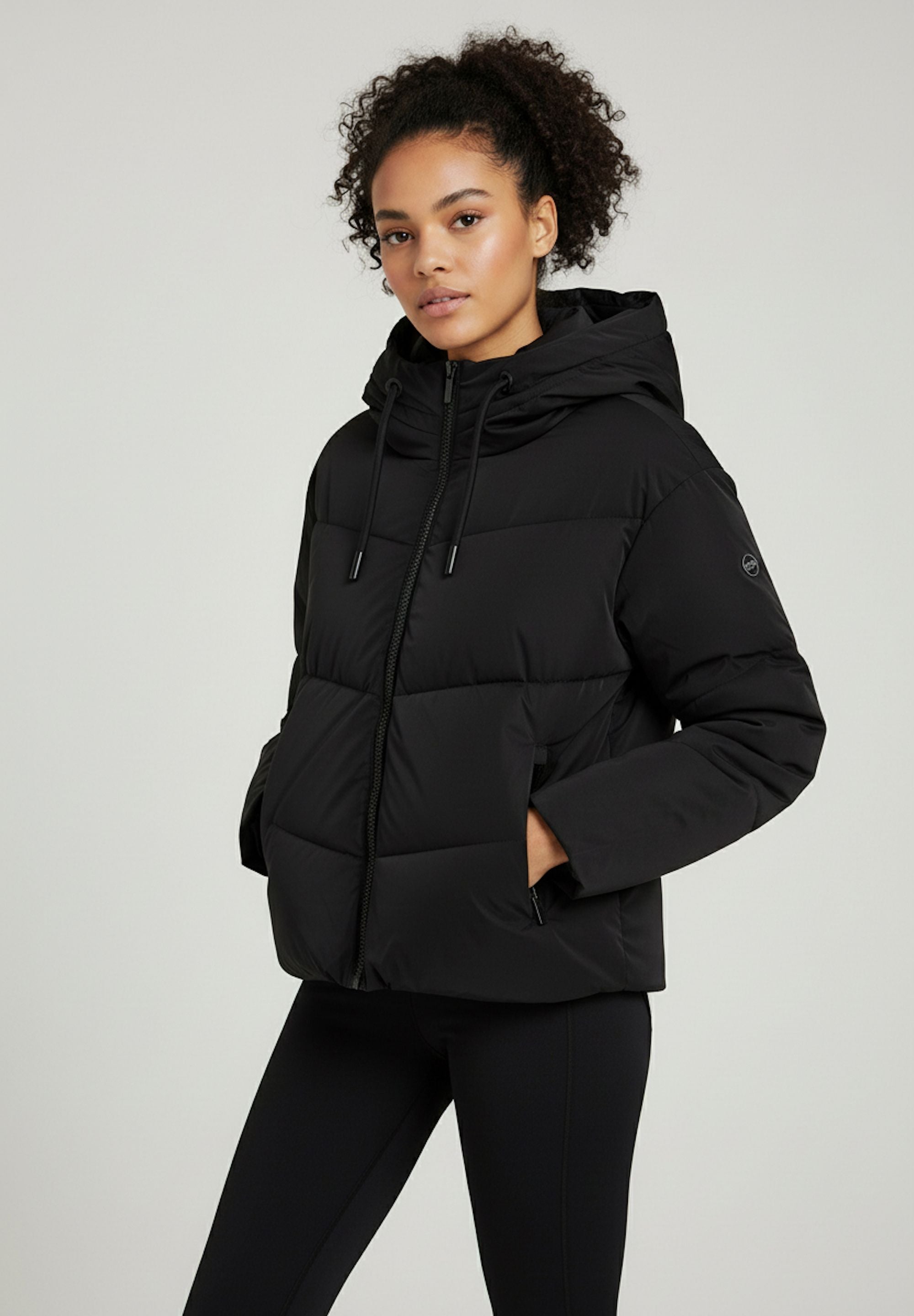 Women's cropped down jacket with turtleneck and adjustable drawstring