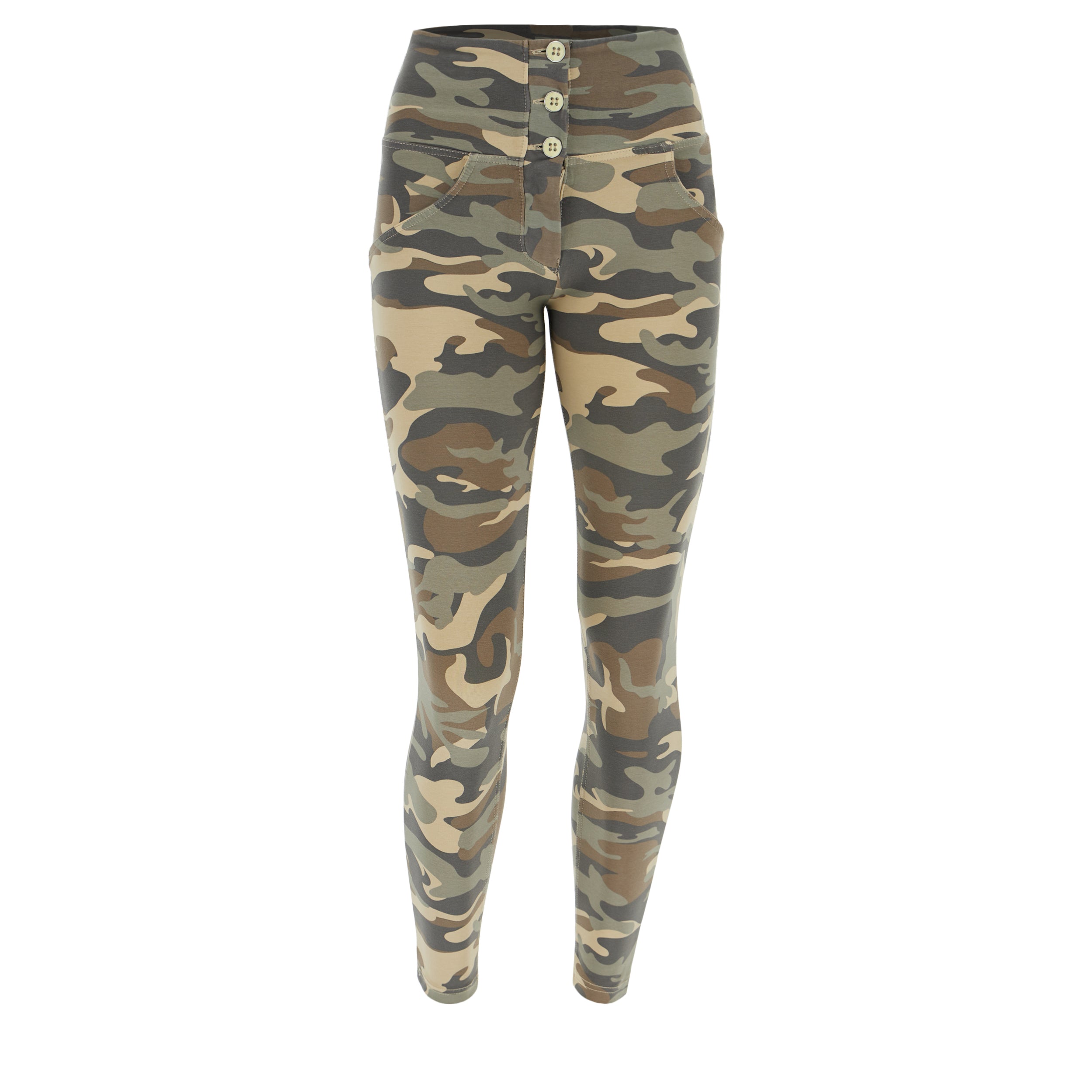 Freddy WR.UP® Damen Push-Up Hose - 7/8 Buttoned High Waist Super Skinny - Camouflage - Z48M