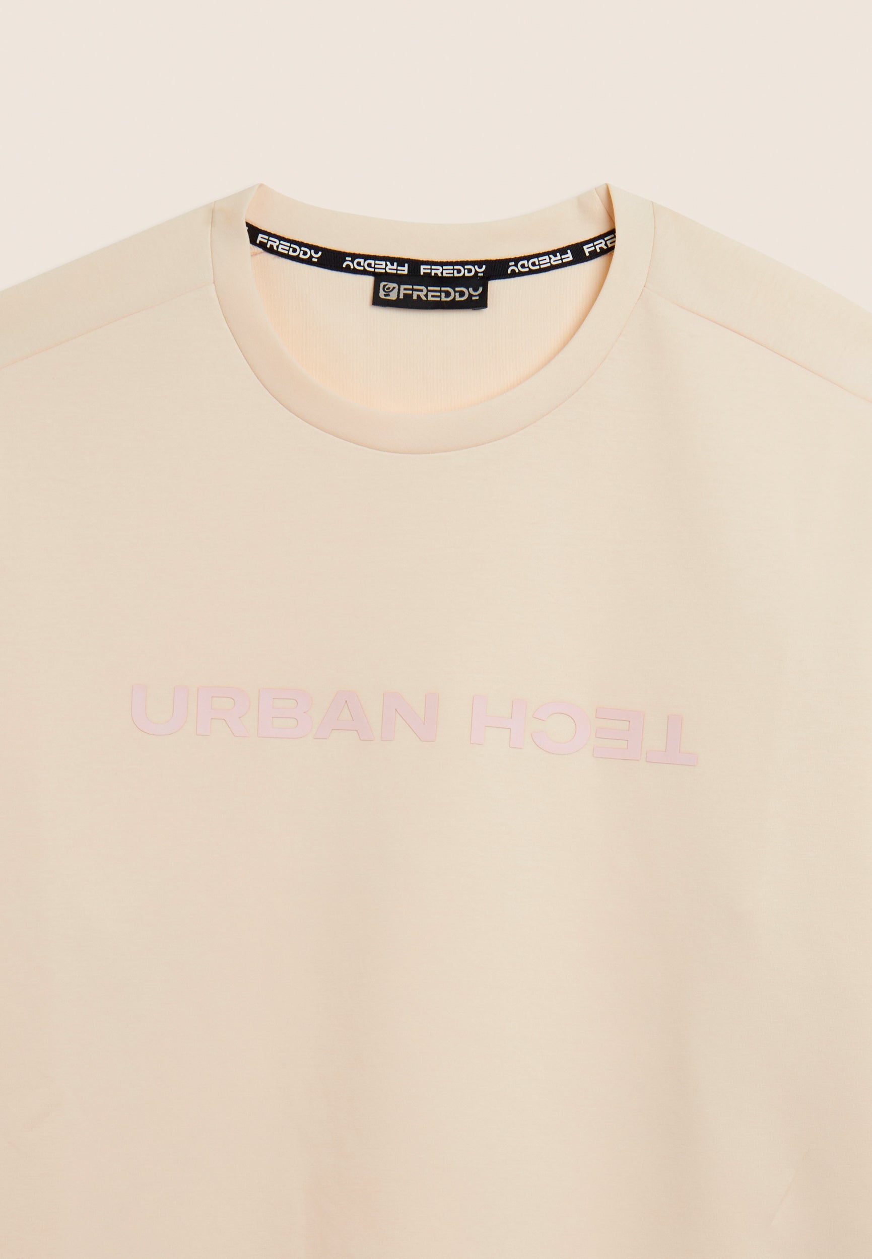 This sweatshirt with a regular cut and crew neckline is perfect for a casual yet stylish look. The ribbed band at the bottom and the ribbed cuffs on the sleeves offer a snug but comfortable fit. The 'URBAN TECH' print on the chest and the Freddy logo on the bottom sleeve add a distinctive touch. The soft-touch interlock fabric offers the right combination of comfort and durability, ideal for leisure and light physical activity.
