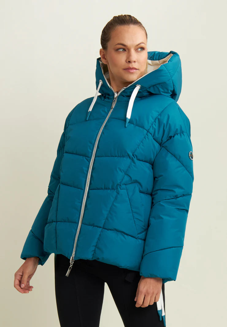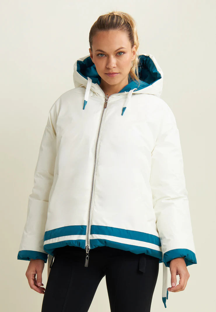 Women's reversible down jacket with adjustable hood