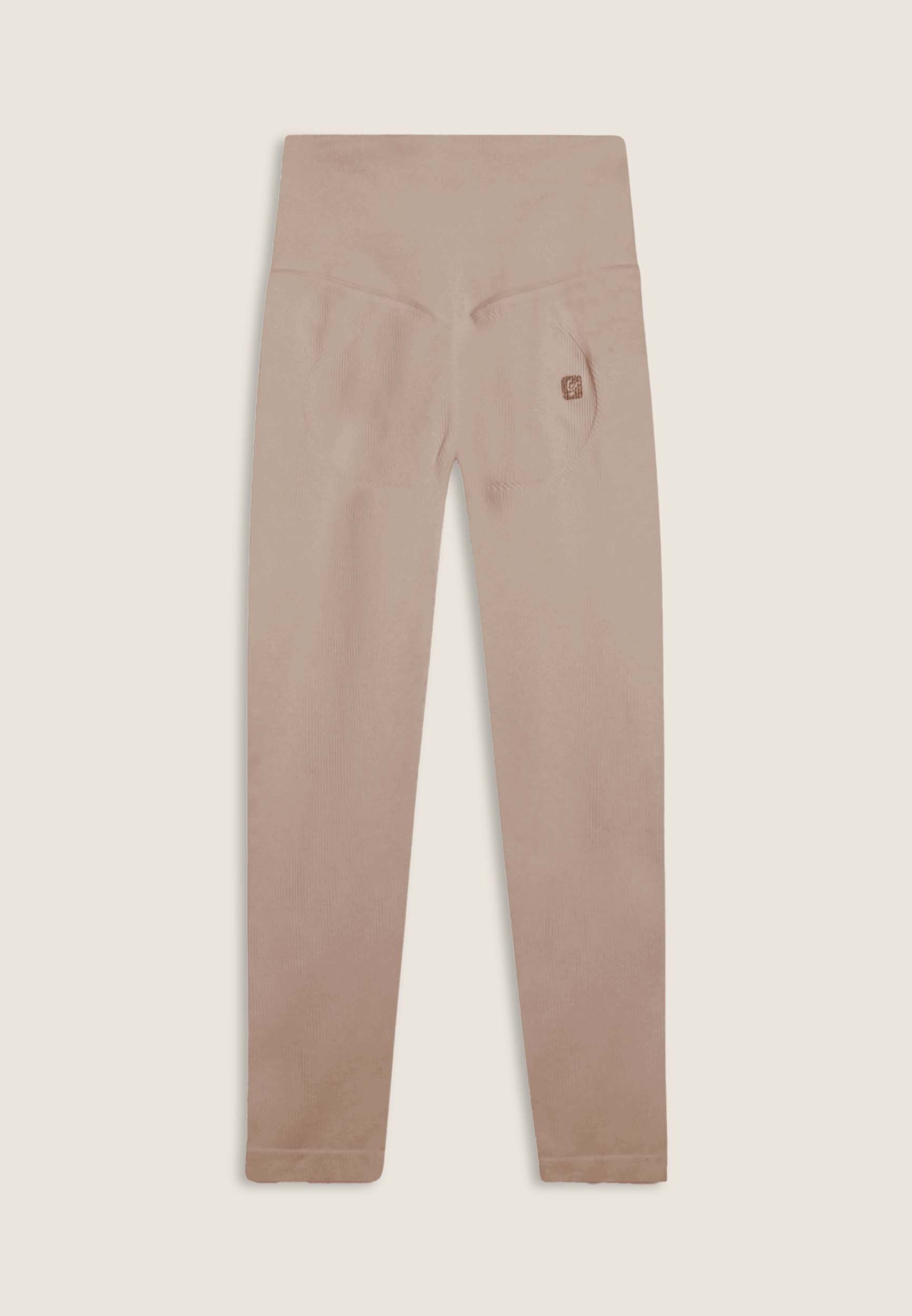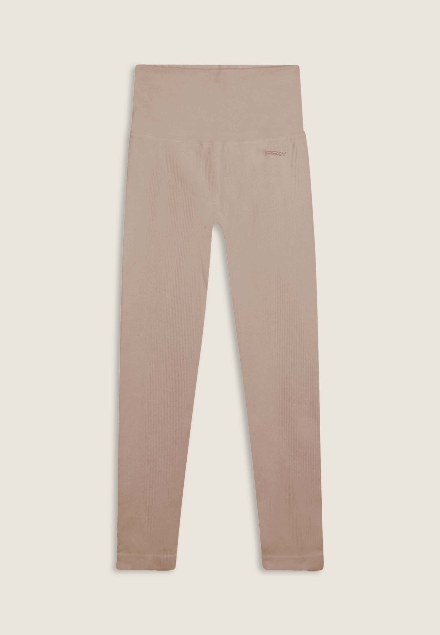 Sports leggings with 7/8 length and skinny leg, made from seamless ribbed fabric for absolute comfort. The very high waist guarantees a stable hold during training, while the heart-shaped seams on the buttocks naturally enhance the shape. Finished with a FREDDY logo on the front and “small man” logo on the back.
