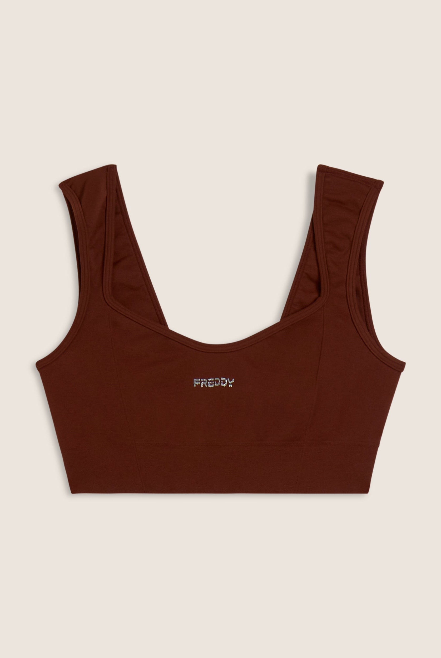 With its feminine and comfortable design, this light support sports top is perfect for yoga and low intensity activities. Sweetheart neckline at the front and square neckline at the back with regular shoulder straps. The nylon jersey performance fabric is soft, breathable and lightweight, with a small FREDDY contrasting logo on the front.