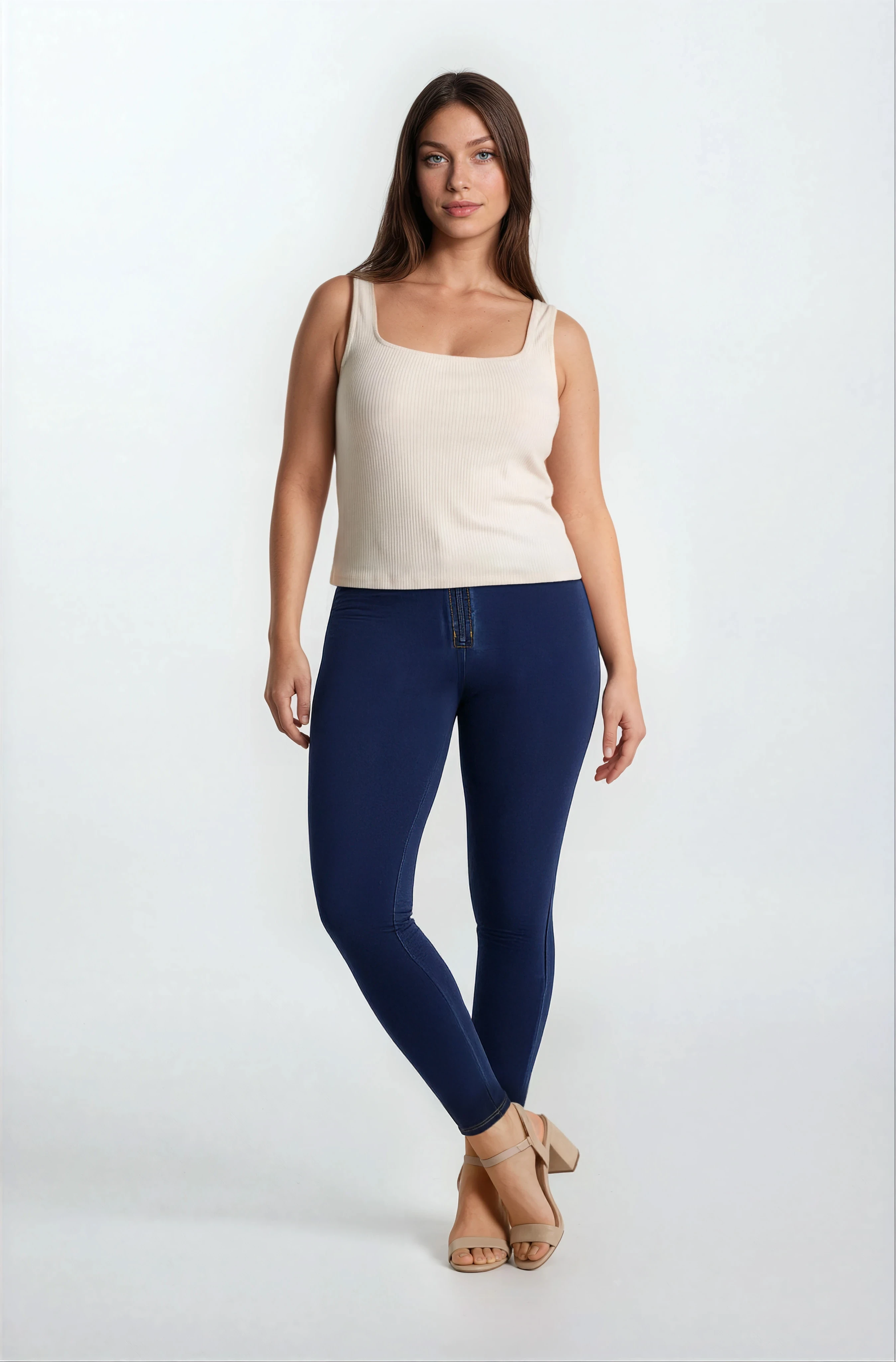 Freddy N.O.W.® Yoga Jeans - 7/8 Mid Waist Super Skinny - J0B - Indigo Blue - Blue Seams