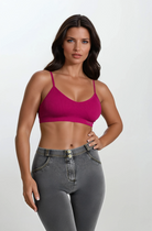 Medium support sports bra, ideal for variable intensity training. Made from seamless ribbed fabric, it seamlessly follows the contours of the body to provide total comfort. The design includes a wide neckline and thin shoulder straps crossed at the back, with a small FREDDY jacquard logo on the underbust band.