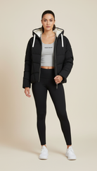 Women's reversible down jacket with adjustable hood